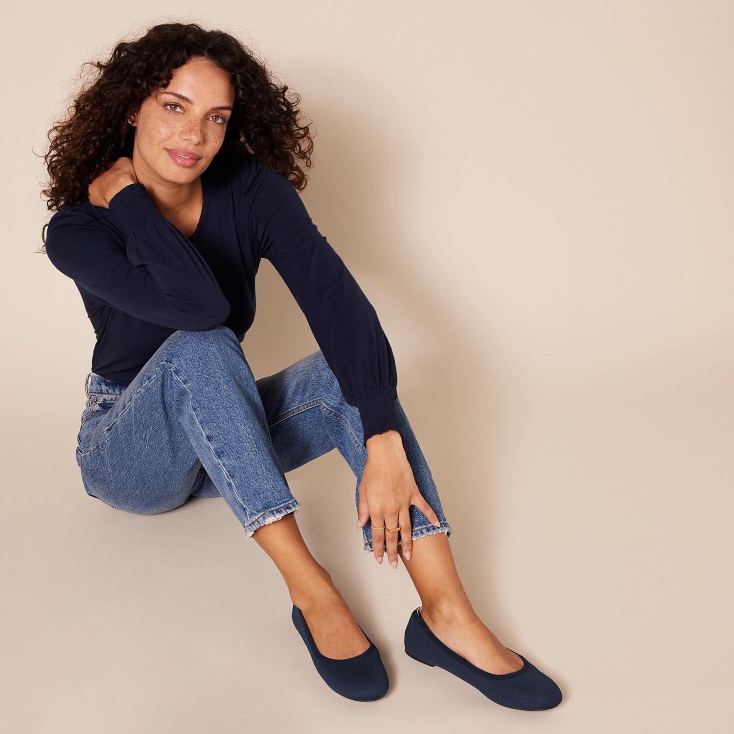 Amazon Essentials Women’s Knit Ballet Flat(Navy)