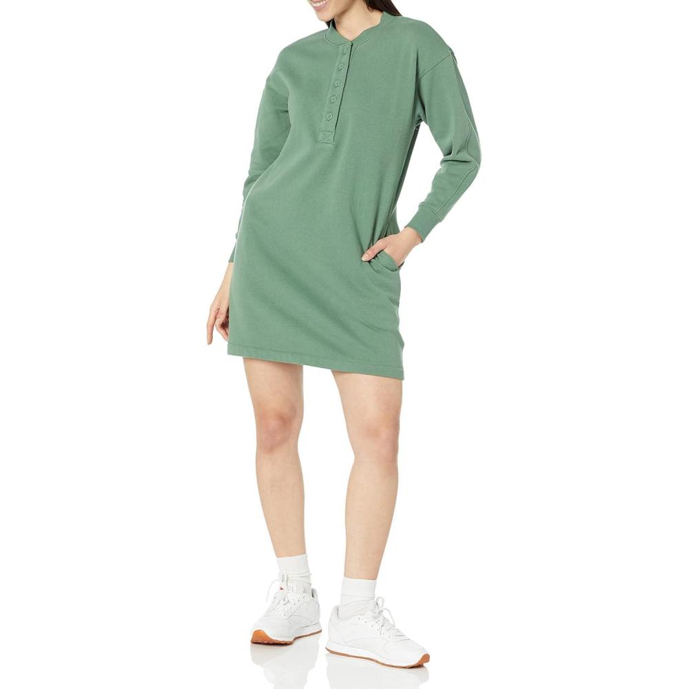 Amazon Essentials Women’s Knit Henley Sweatshirt Dress (Available in Plus Size)(Sage Green)