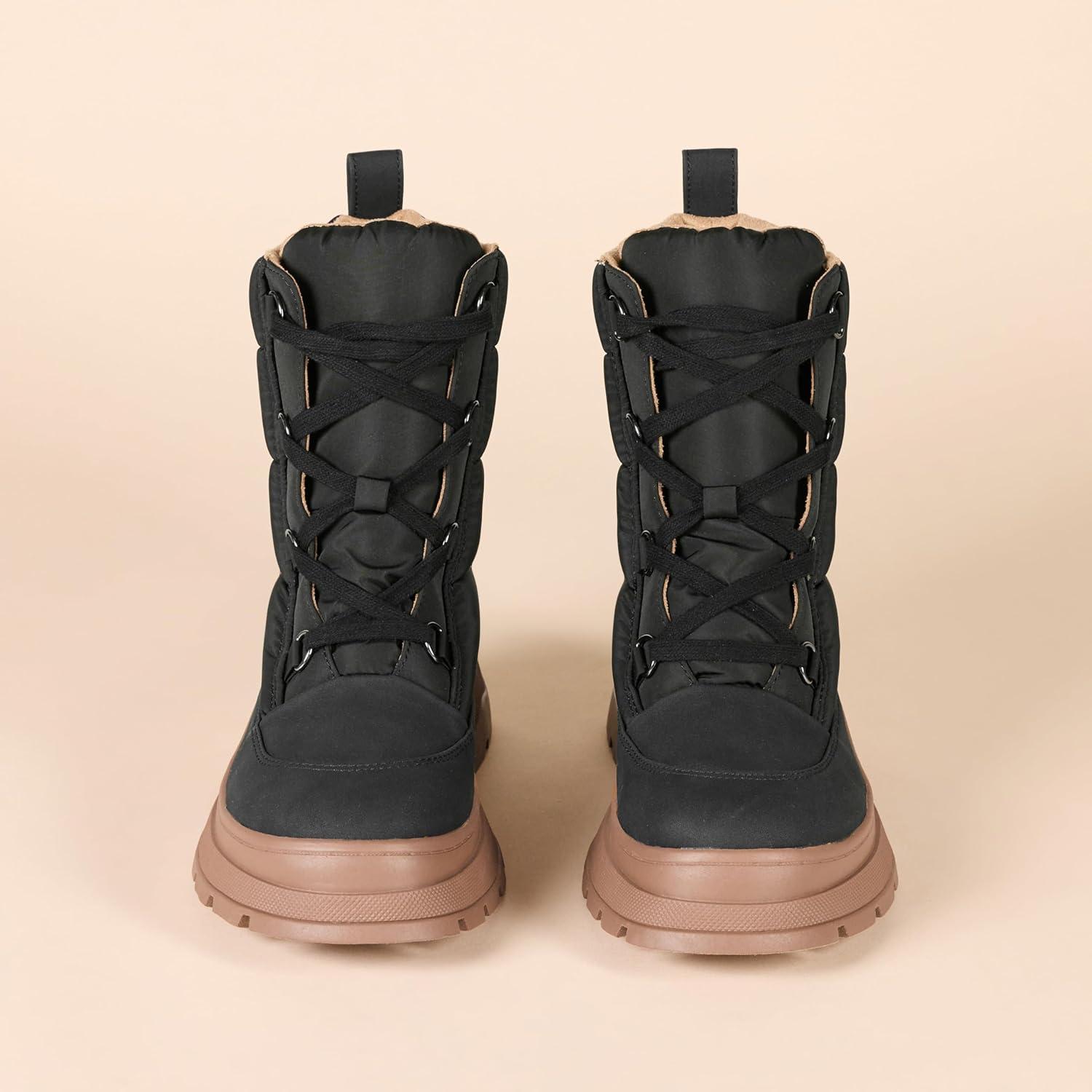 Amazon Essentials Women’s Lace Up Puffer Boot(Black)