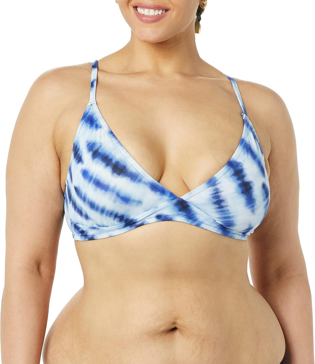 Amazon Essentials Women’s Light-Support Classic Bikini Swimsuit Top(Blue Tie Dye)