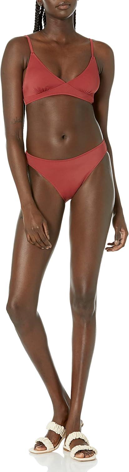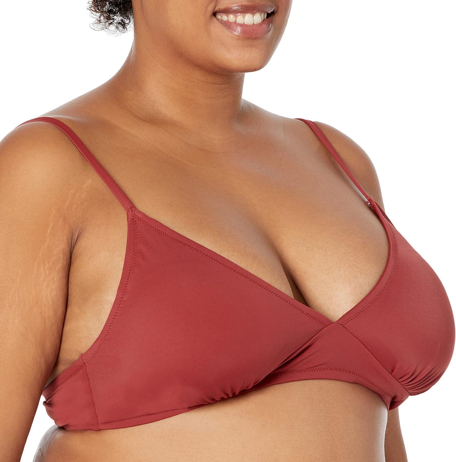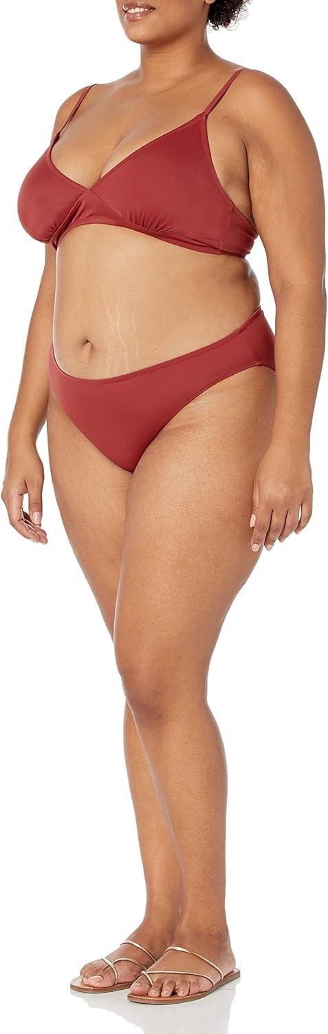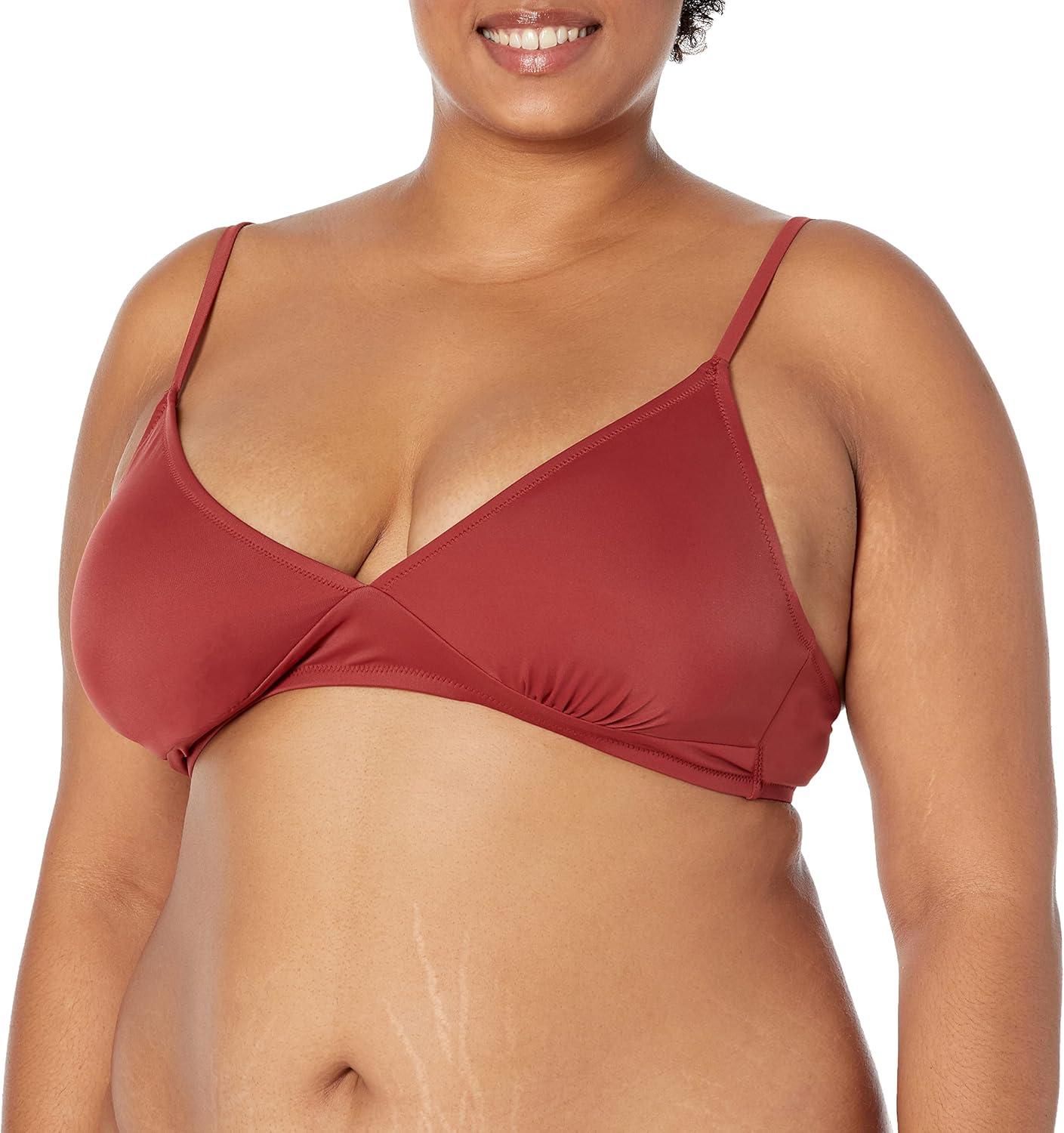 Amazon Essentials Women’s Light-Support Classic Bikini Swimsuit Top(Brick Red)
