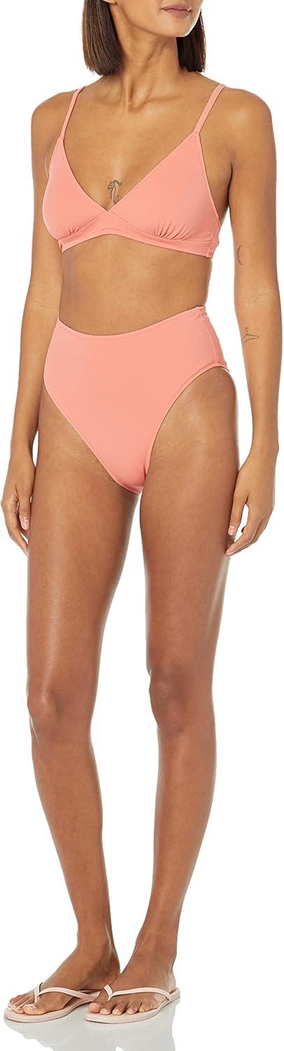 Amazon Essentials Women’s Light-Support Classic Bikini Swimsuit Top(Coral Pink)