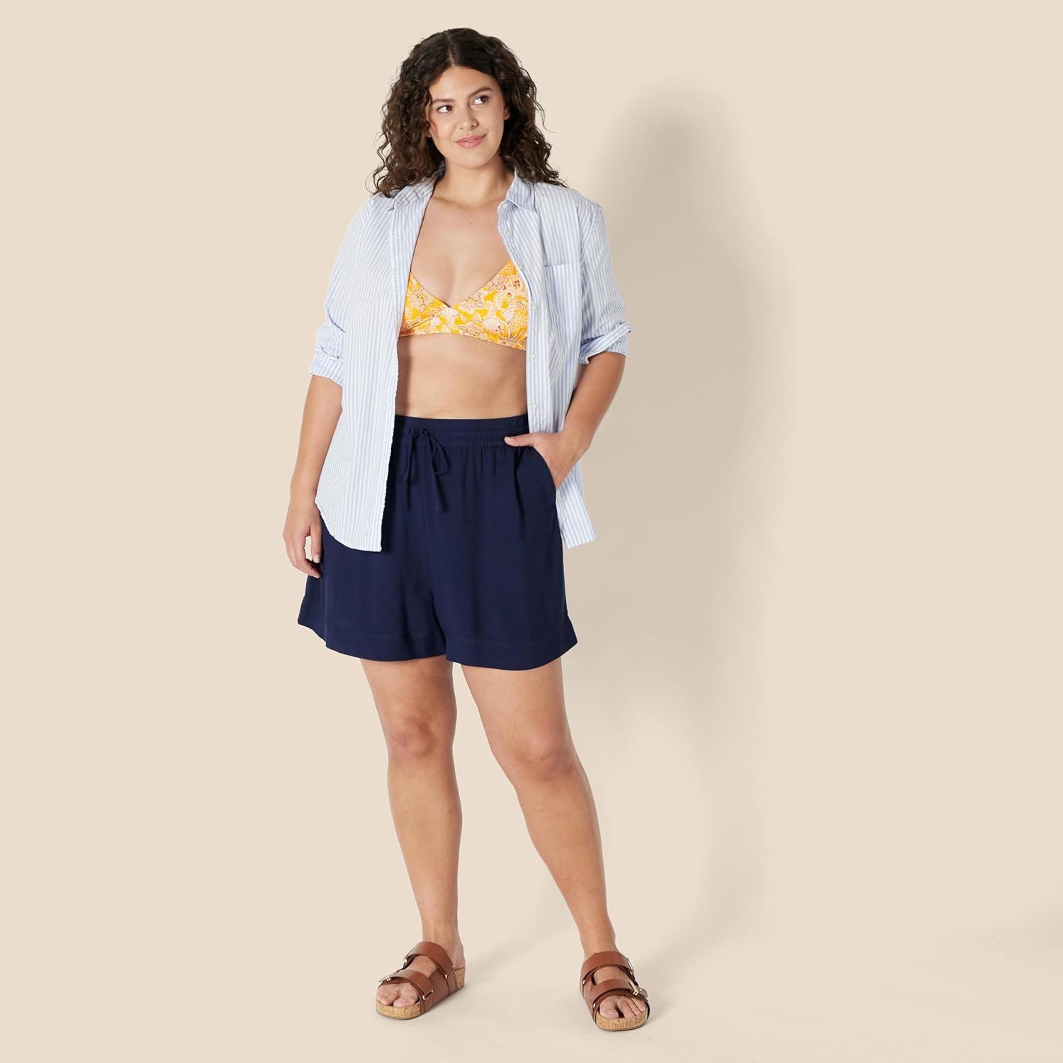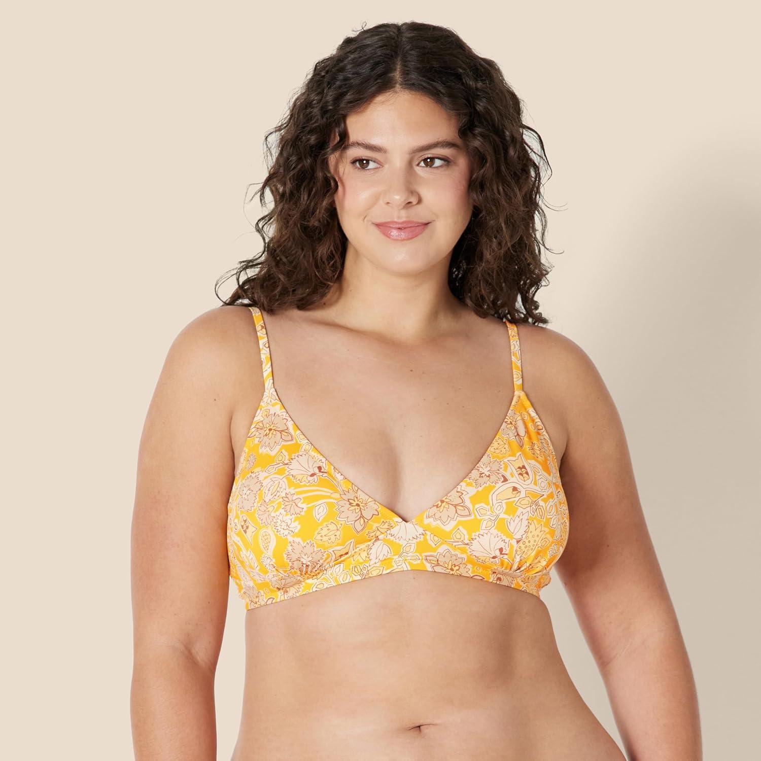 Amazon Essentials Women’s Light-Support Classic Bikini Swimsuit Top(Yellow Multi Folk Floral)