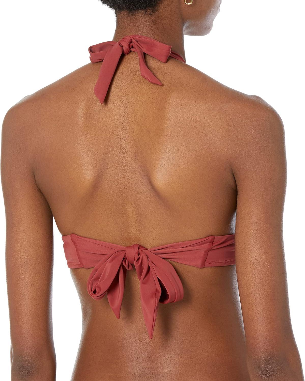 Amazon Essentials Women’s Light-Support Tie Halter Bikini Swimsuit Top (Available in Plus Size)(Brick Red)