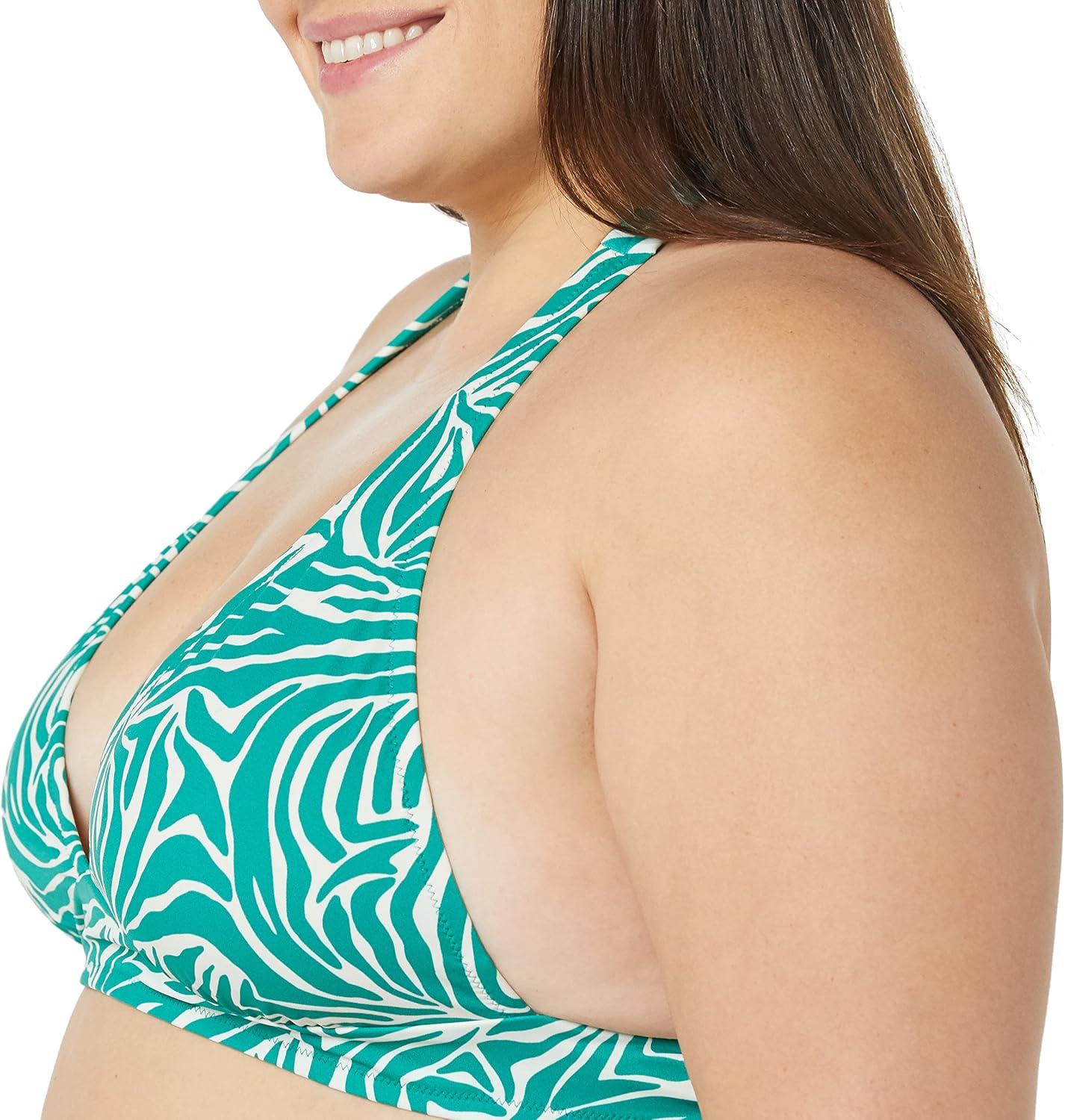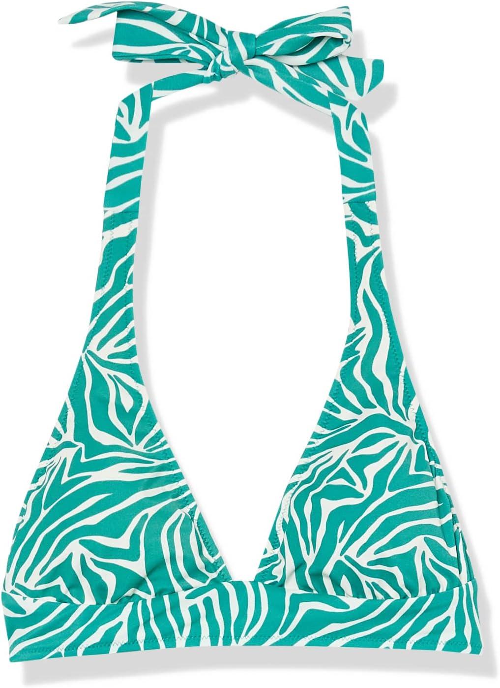 Amazon Essentials Women's Light-Support Tie Halter Bikini Swimsuit Top (Available in Plus Size)(Green Zebra Stripe)