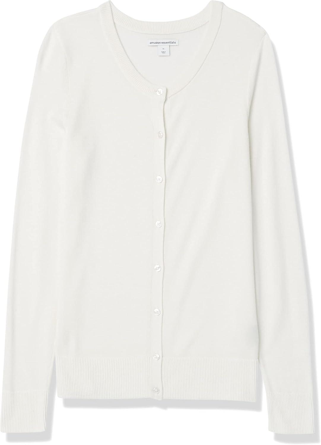 Amazon Essentials Women’s Lightweight Crewneck Cardigan Sweater (Available in Plus Size)(Ivory)