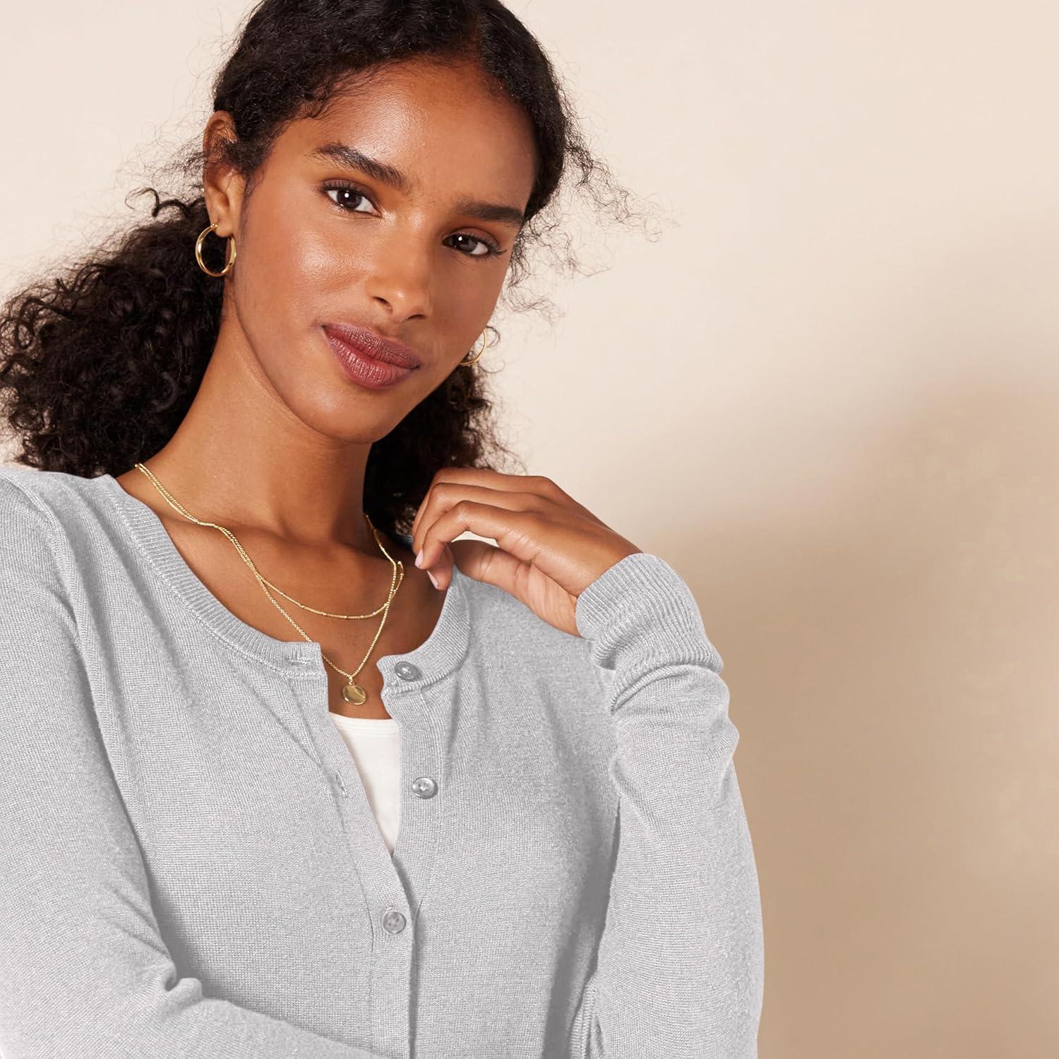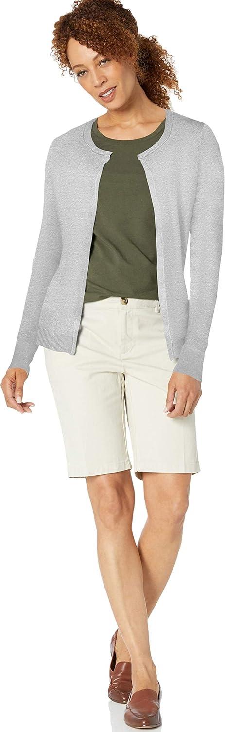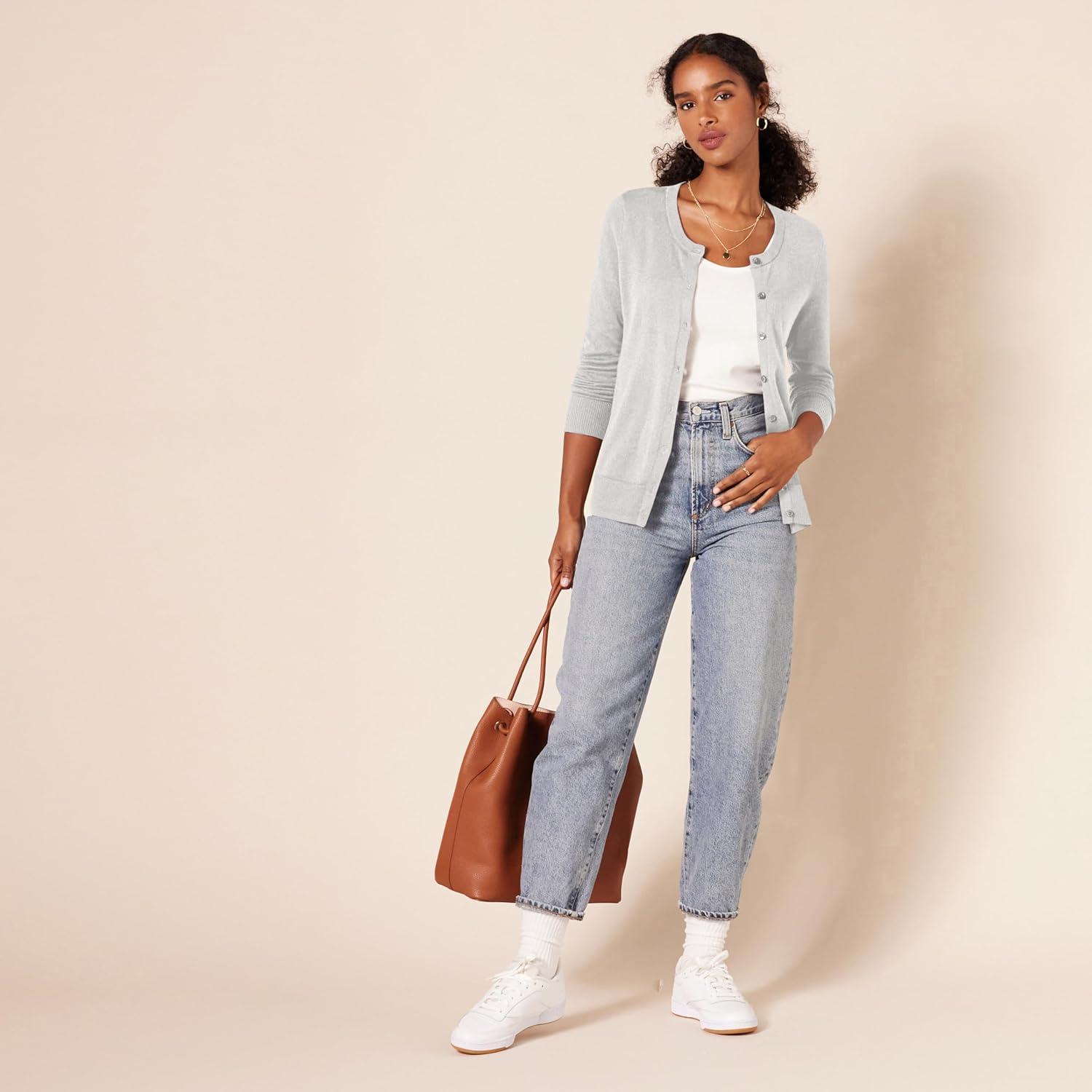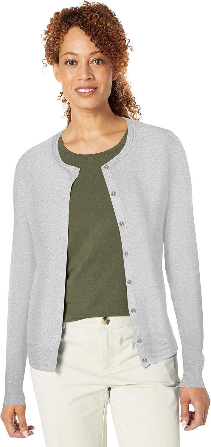 Amazon Essentials Women’s Lightweight Crewneck Cardigan Sweater (Available in Plus Size)(Light Grey Heather)