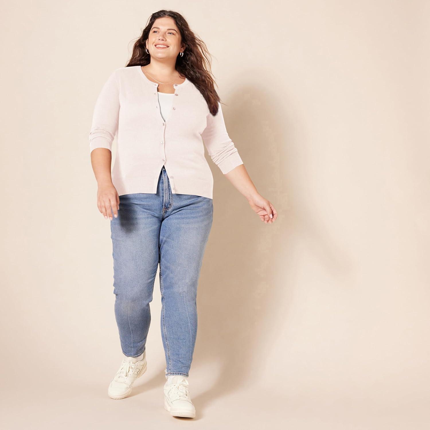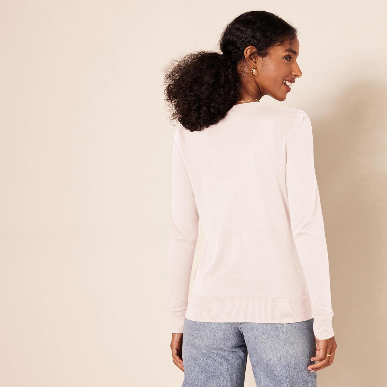 Amazon Essentials Women’s Lightweight Crewneck Cardigan Sweater (Available in Plus Size)(Light Pink)