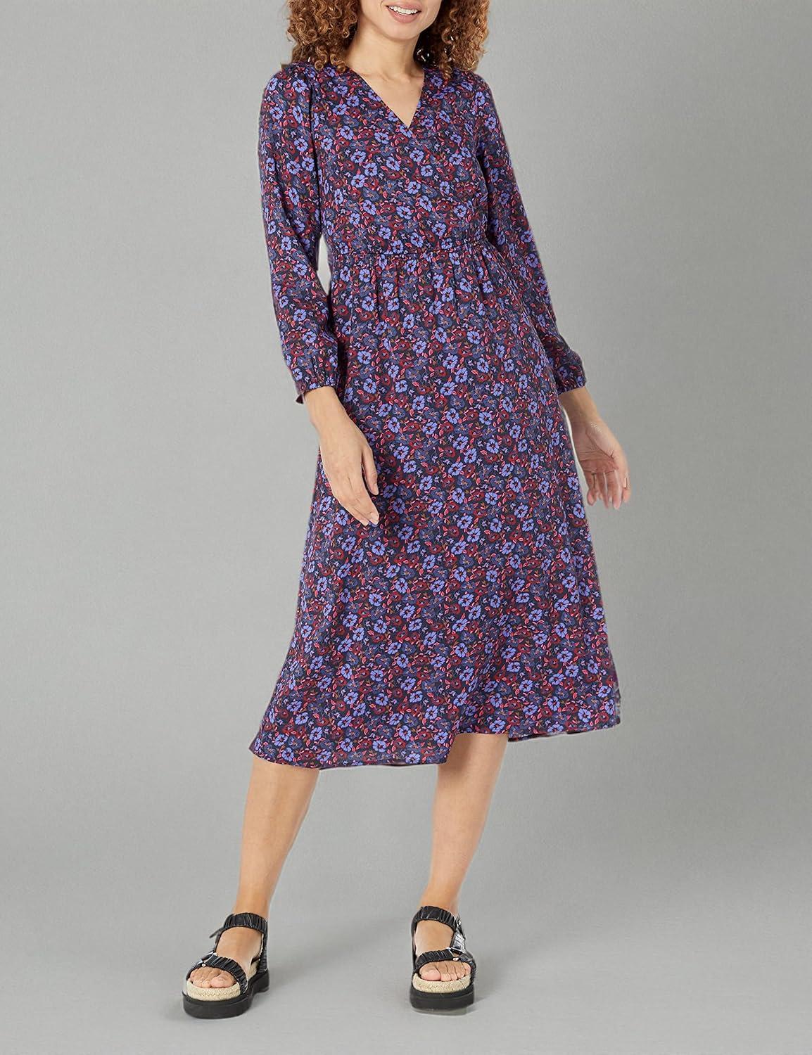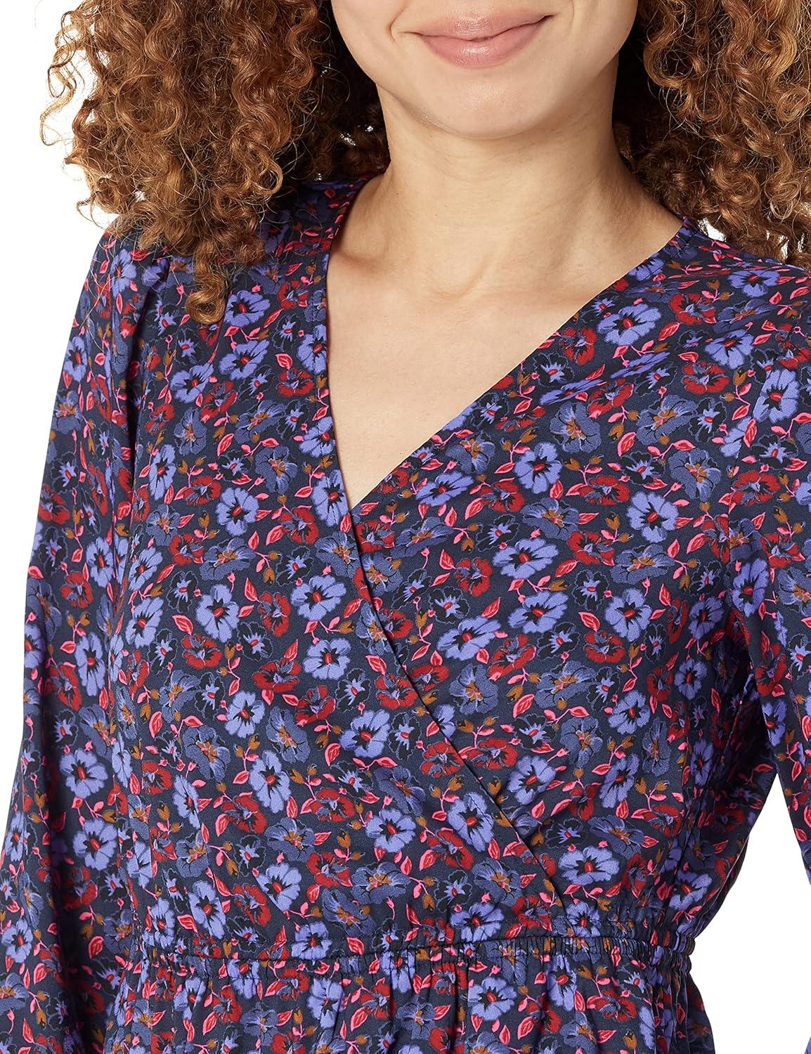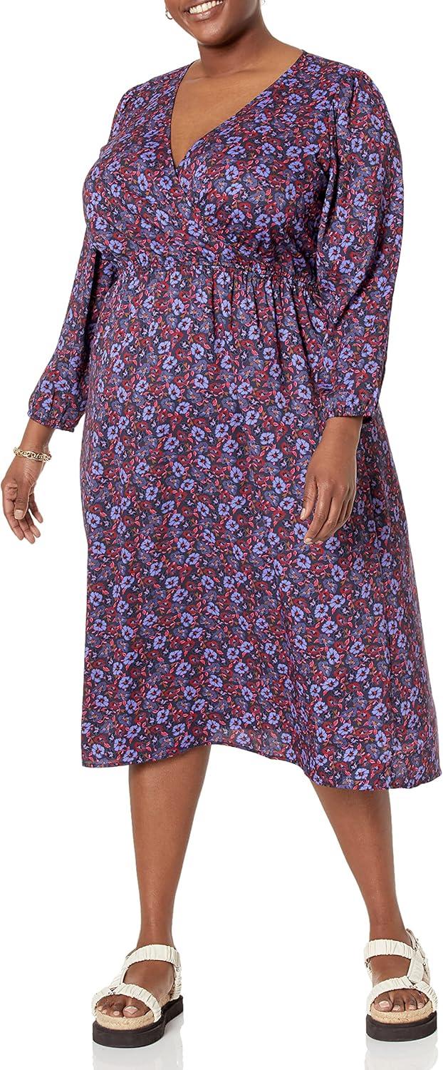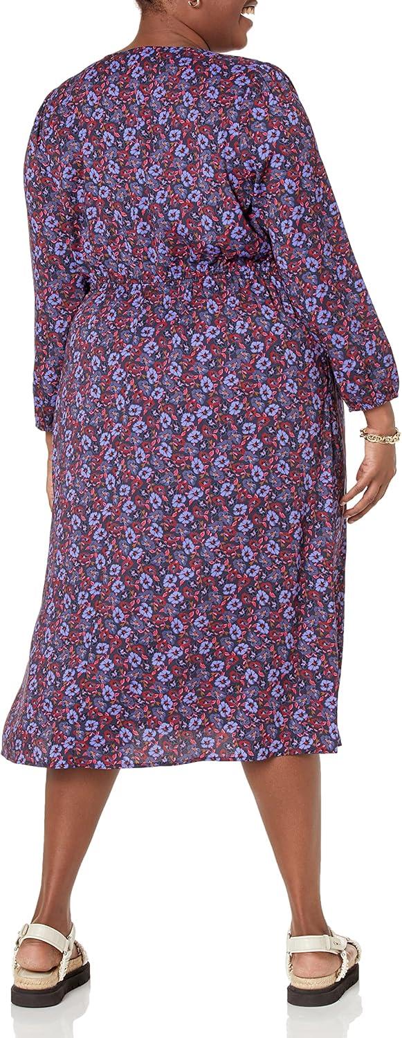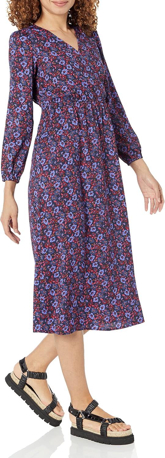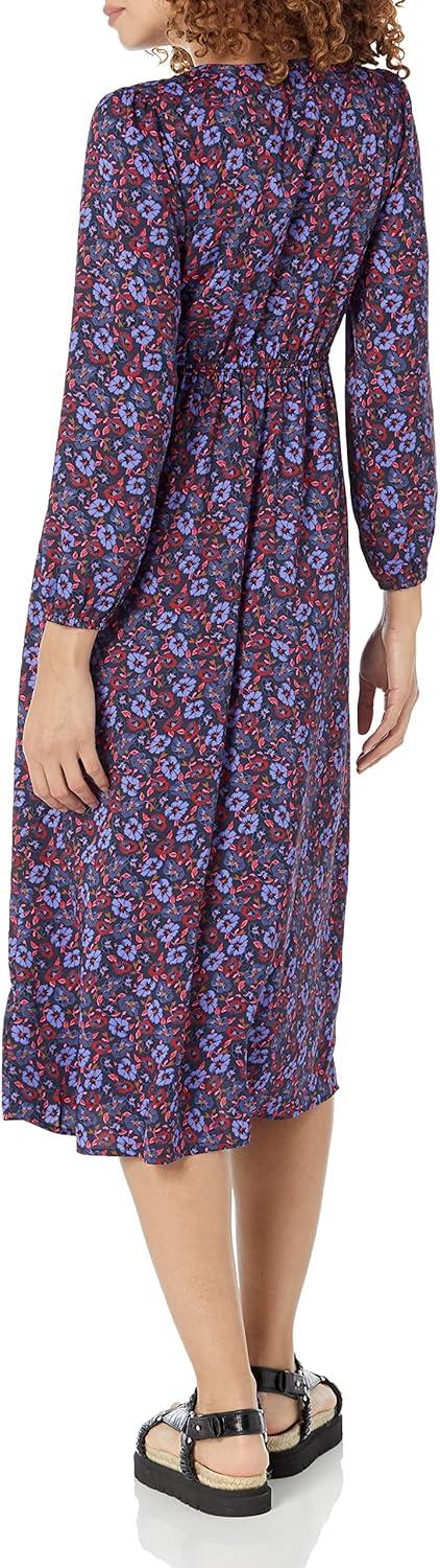 Amazon Essentials Women’s Lightweight Georgette Long Sleeve V-Neck Midi Dress (Available in Plus Size)(Dark Blue Pansy)
