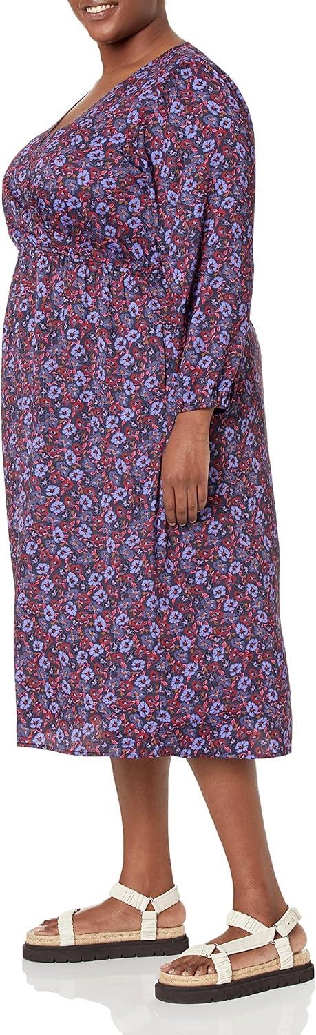 Amazon Essentials Women's Lightweight Georgette Long Sleeve V-Neck Midi Dress (Available in Plus Size)(Dark Blue Pansy)