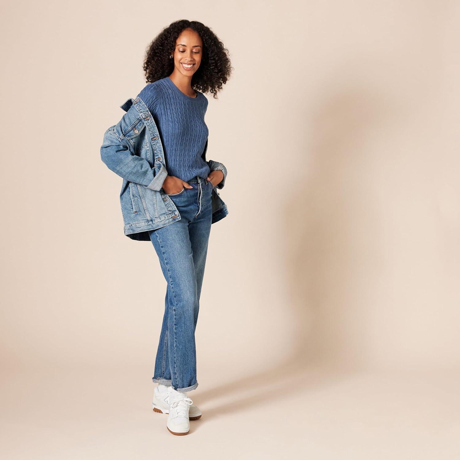 Amazon Essentials Women’s Lightweight Long-Sleeve Cable Crewneck Sweater (Available in Plus Size)(Blue Heather)