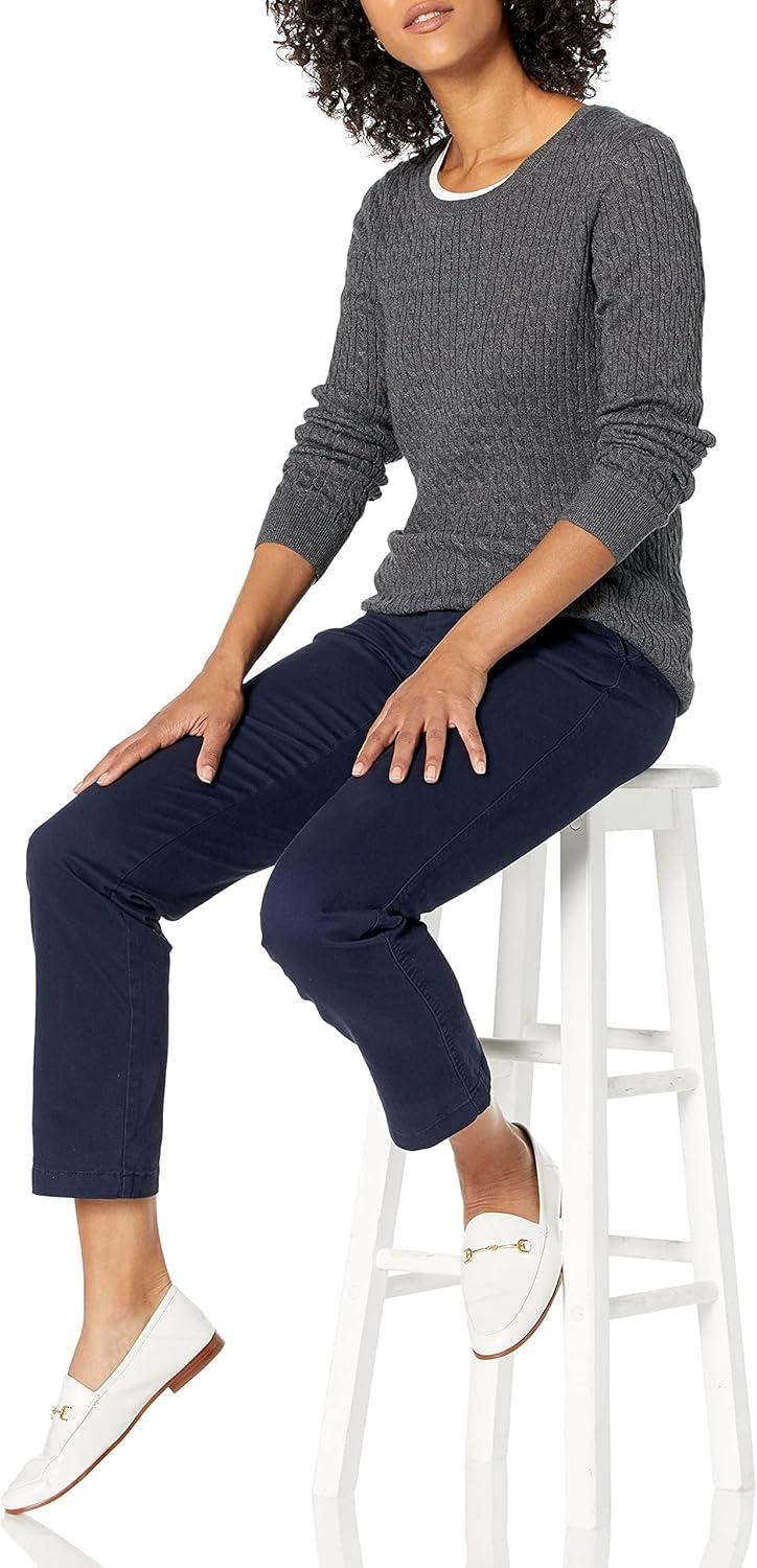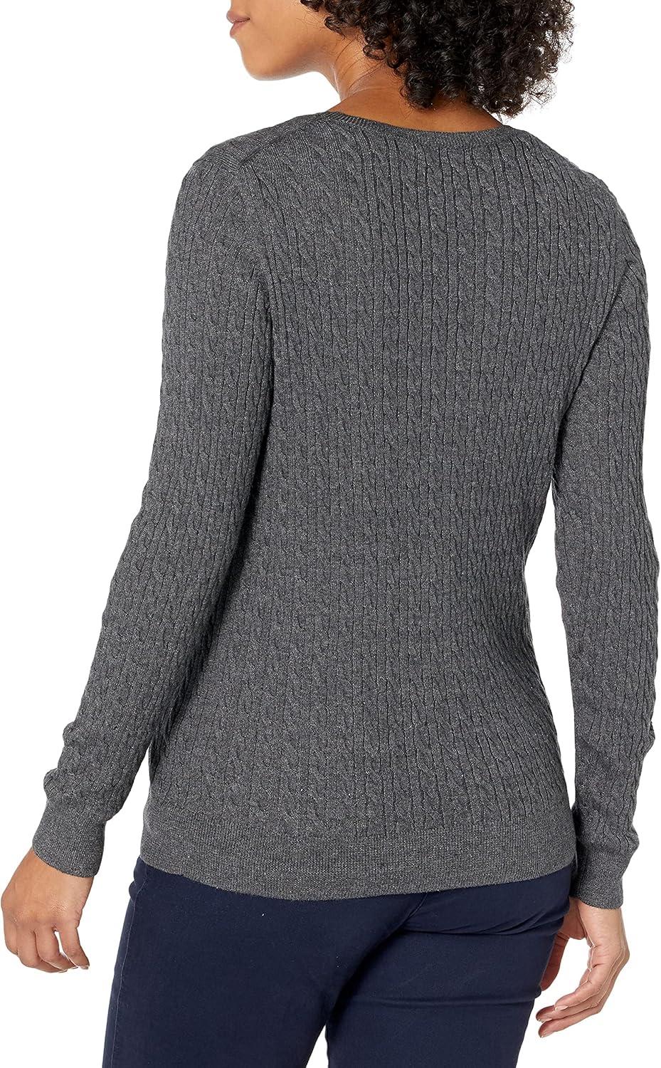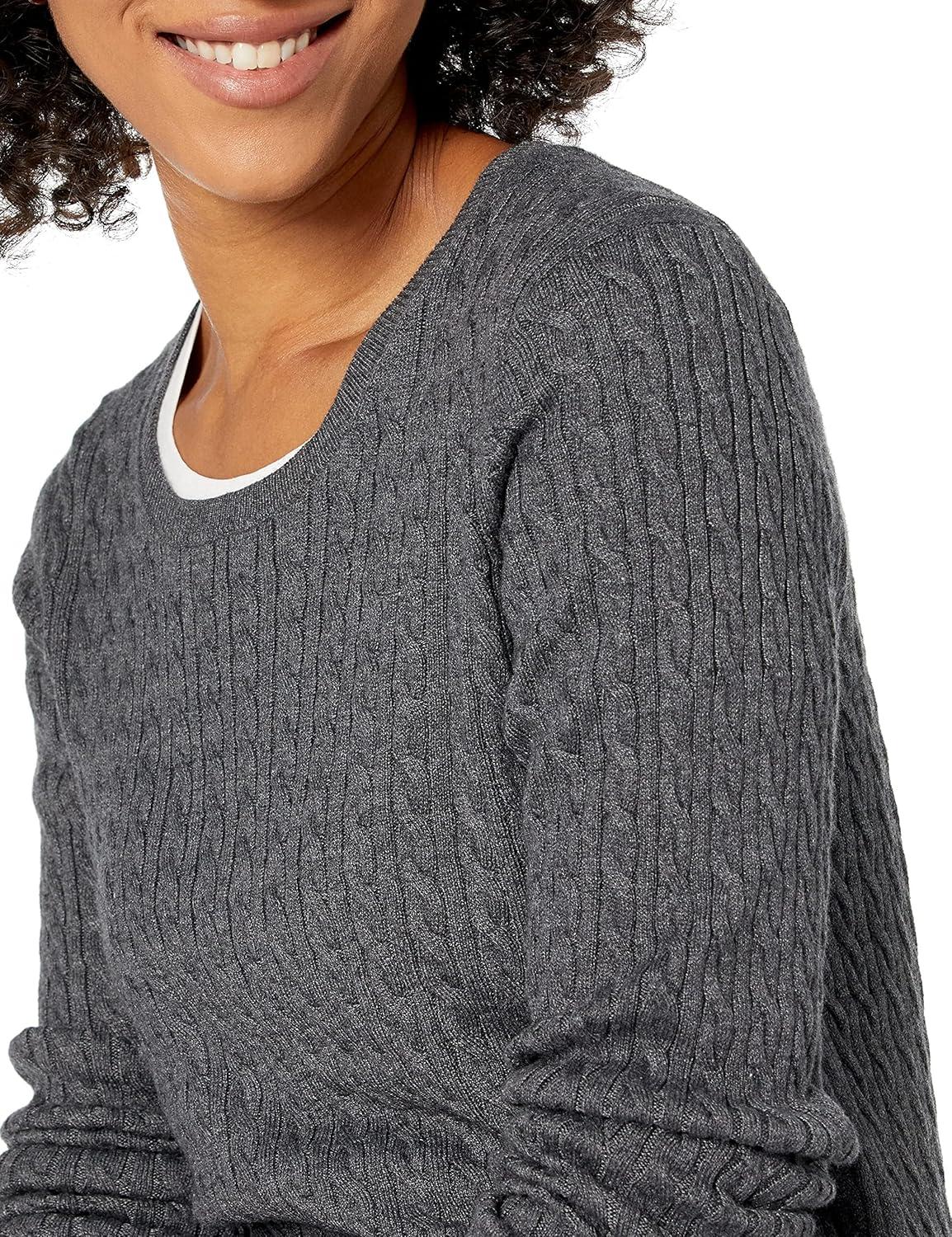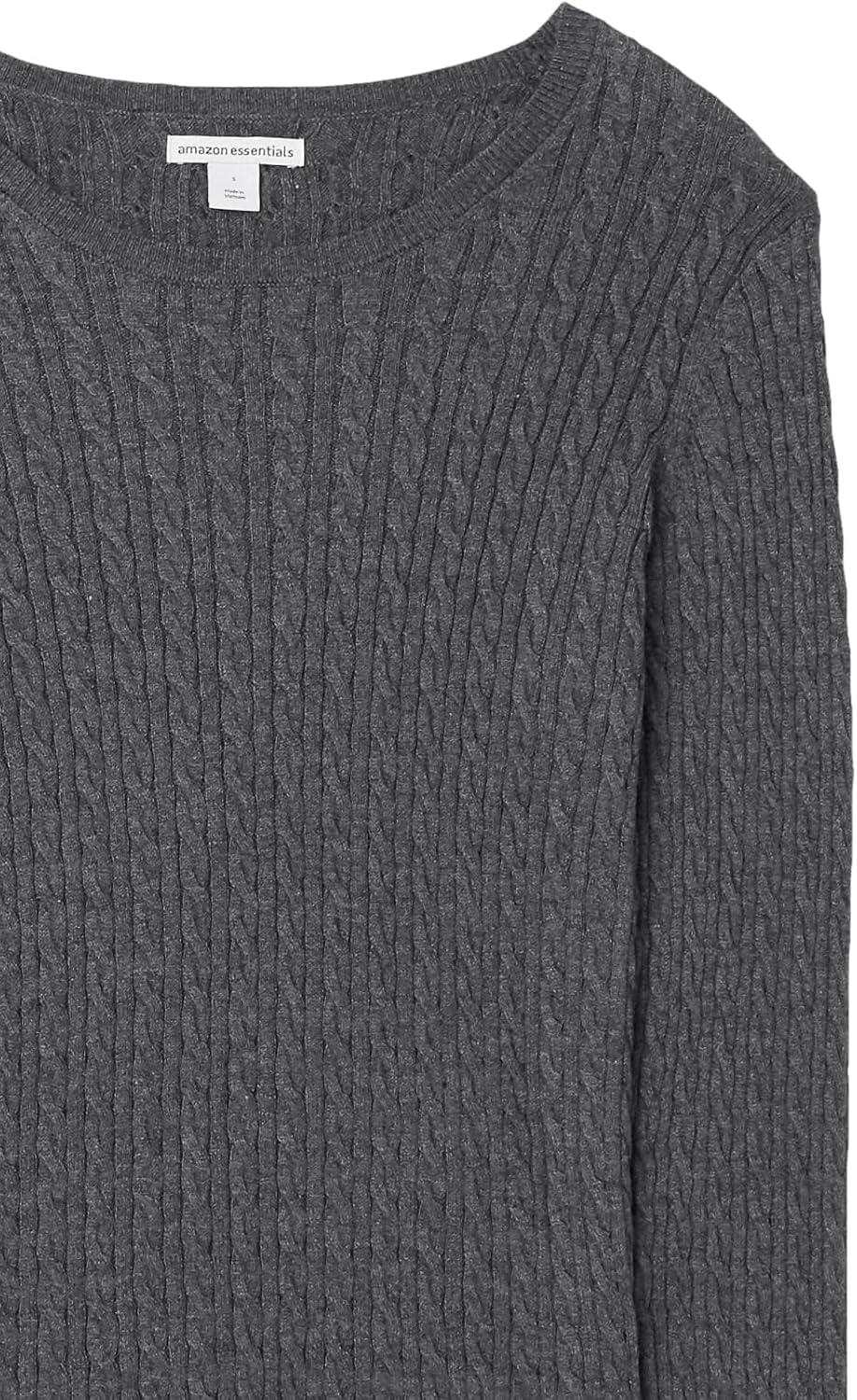 Amazon Essentials Women’s Lightweight Long-Sleeve Cable Crewneck Sweater (Available in Plus Size)(Charcoal Heather)