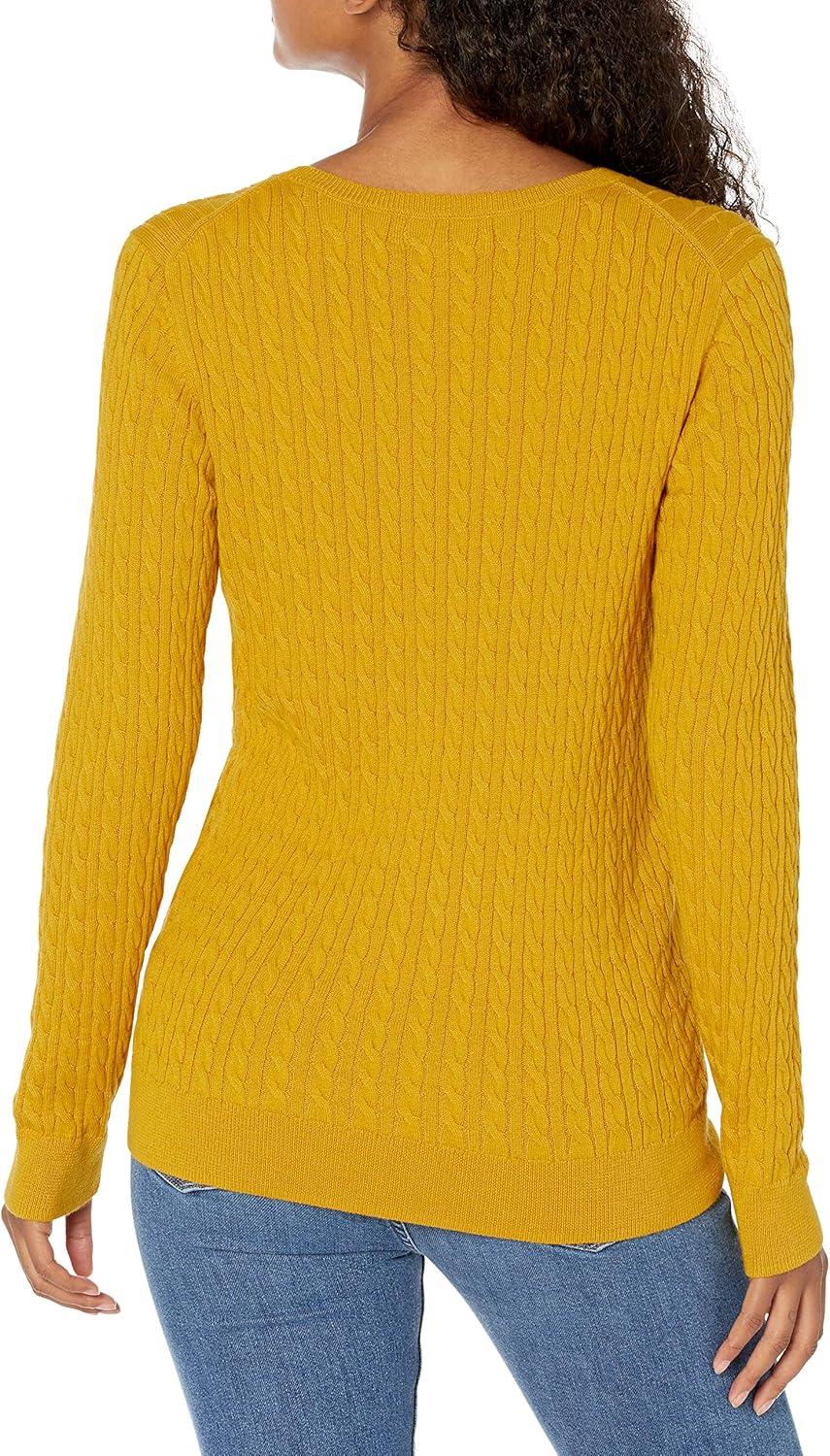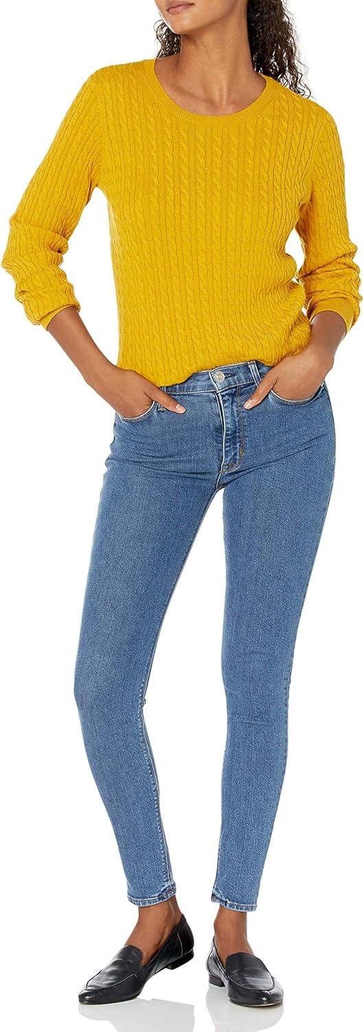 Amazon Essentials Women’s Lightweight Long-Sleeve Cable Crewneck Sweater (Available in Plus Size)(Gold)