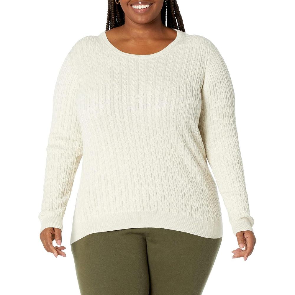 Amazon Essentials Women’s Lightweight Long-Sleeve Cable Crewneck Sweater (Available in Plus Size)(Oatmeal Heather)