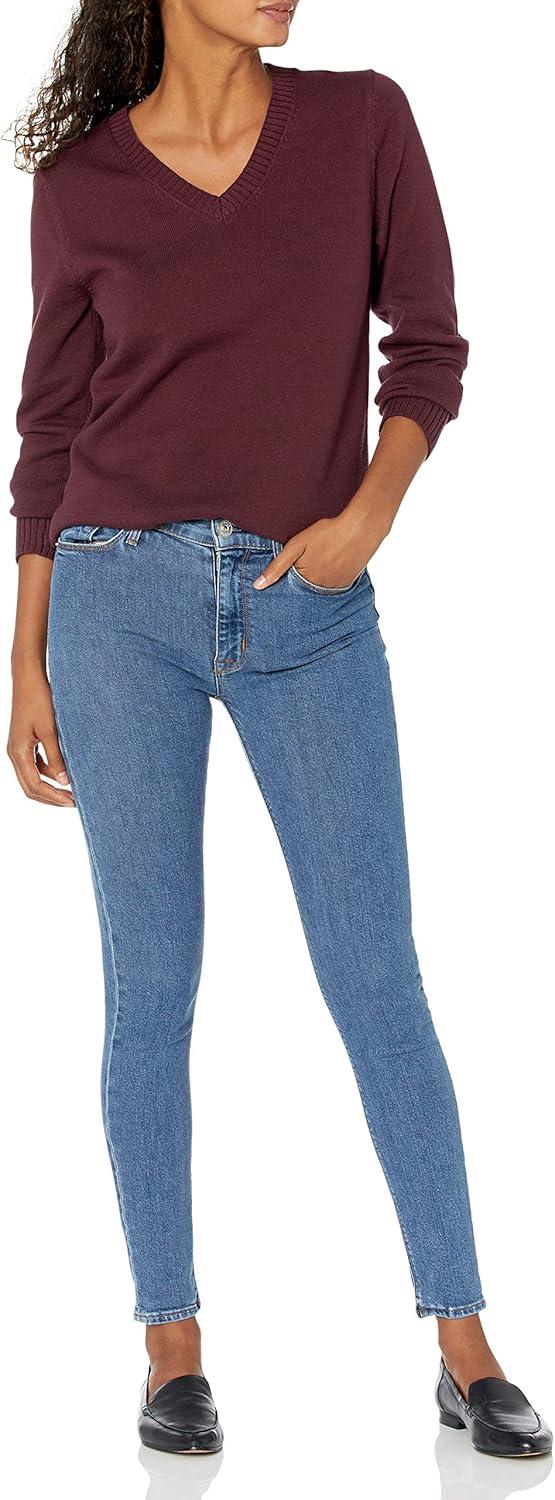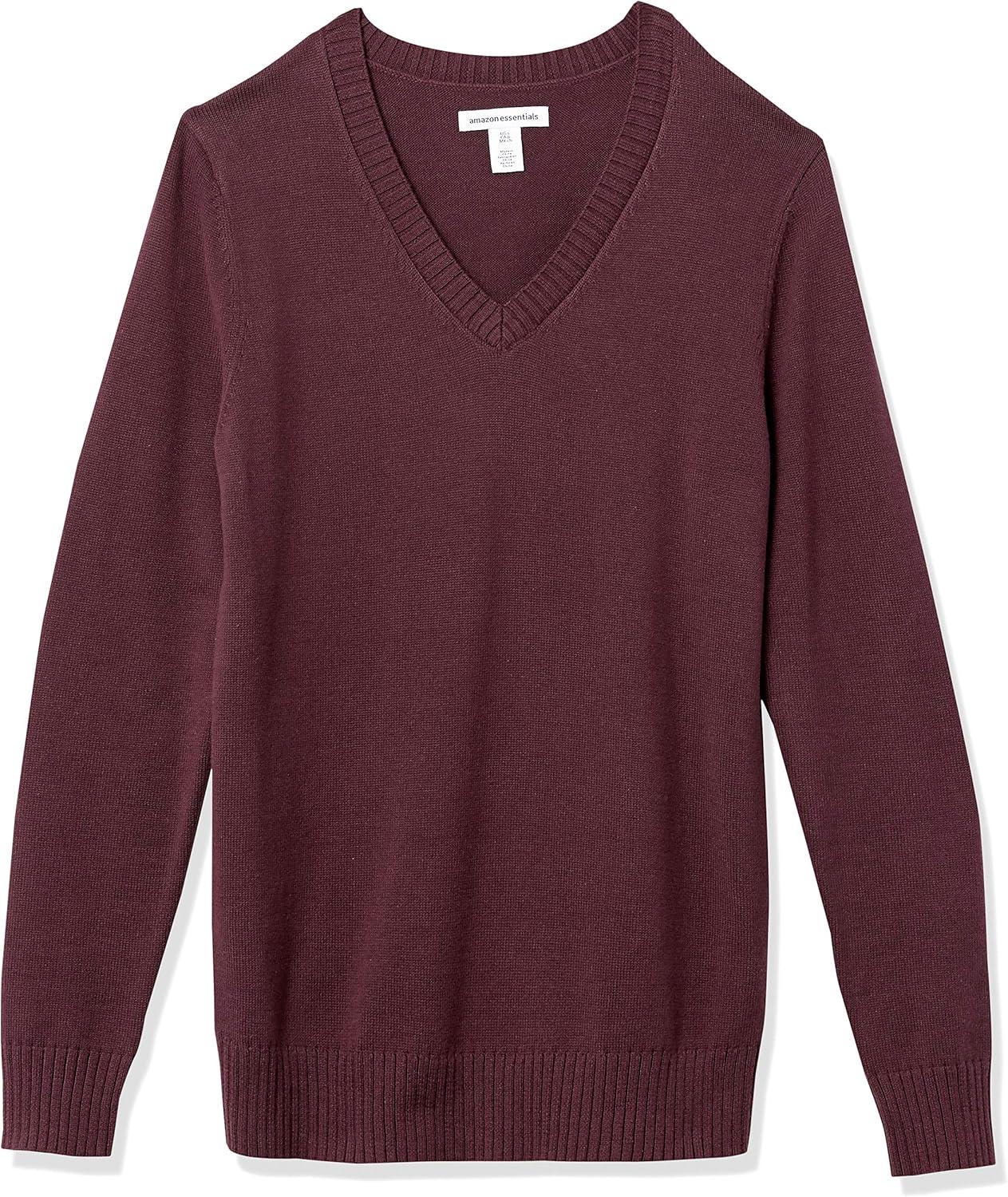 Amazon Essentials Women’s Lightweight Long-Sleeve V-Neck Sweater, 100% Cotton(Burgundy)