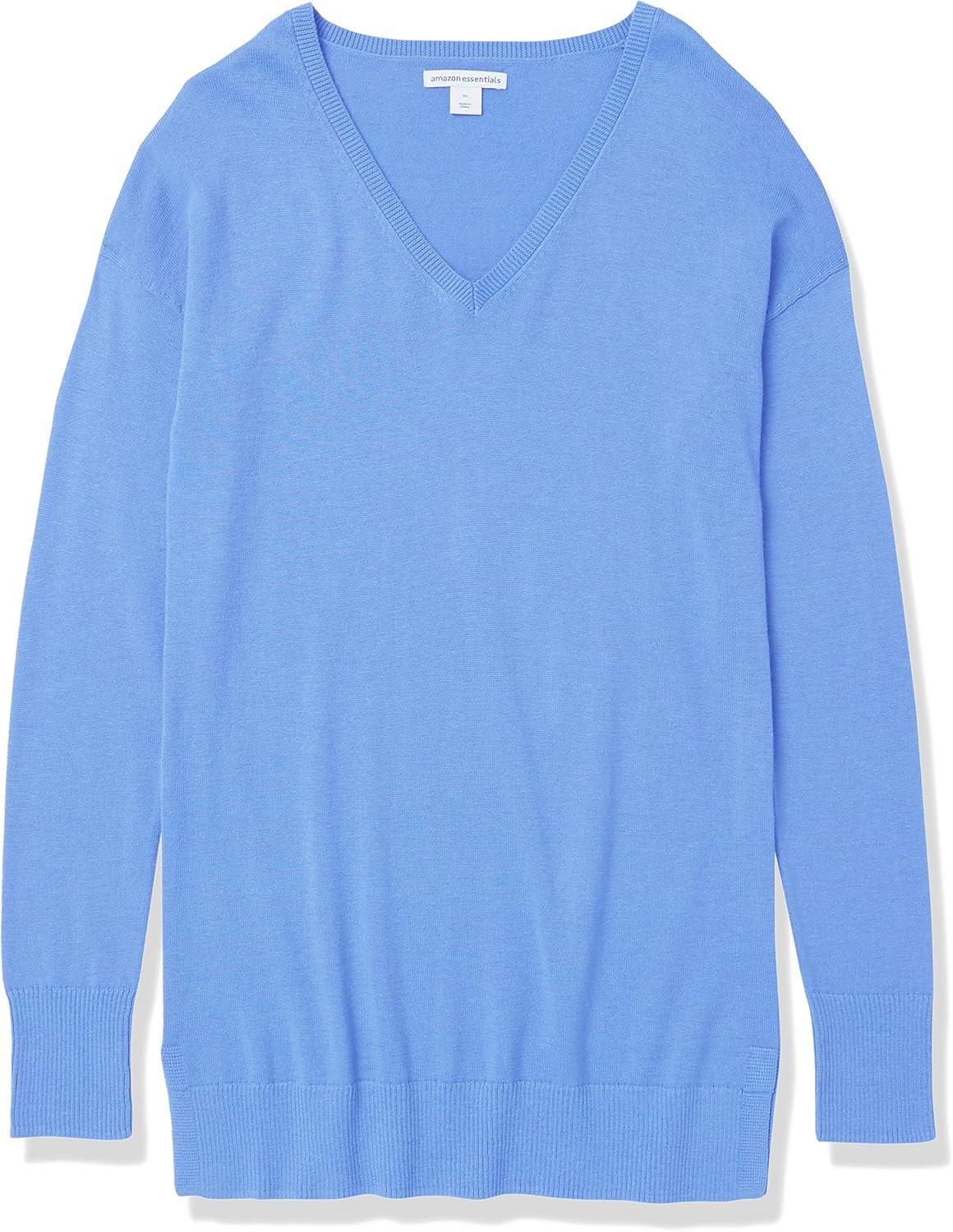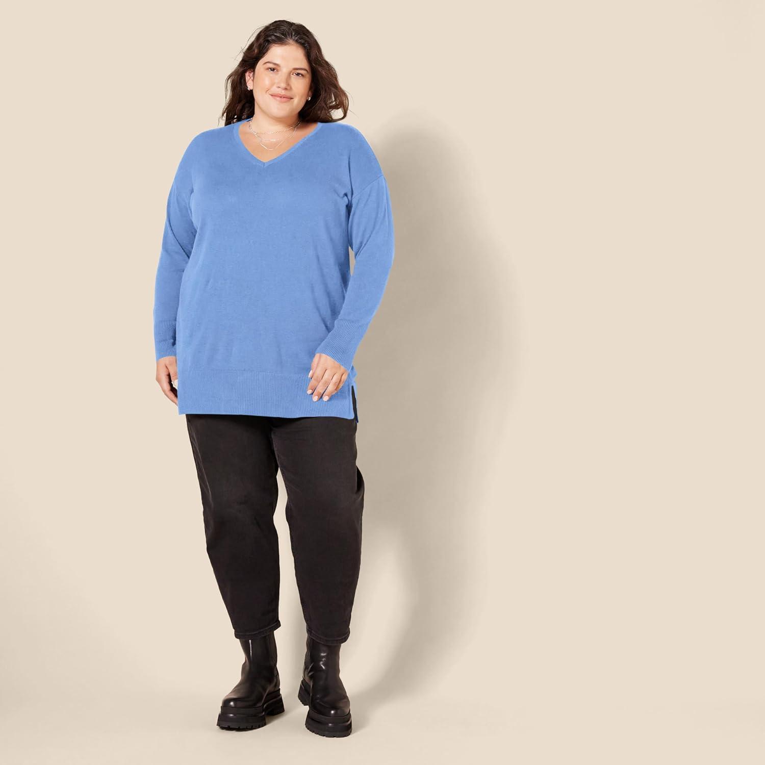 Amazon Essentials Women’s Lightweight Long-Sleeve V-Neck Tunic Sweater (Available in Plus Size)(Blue)