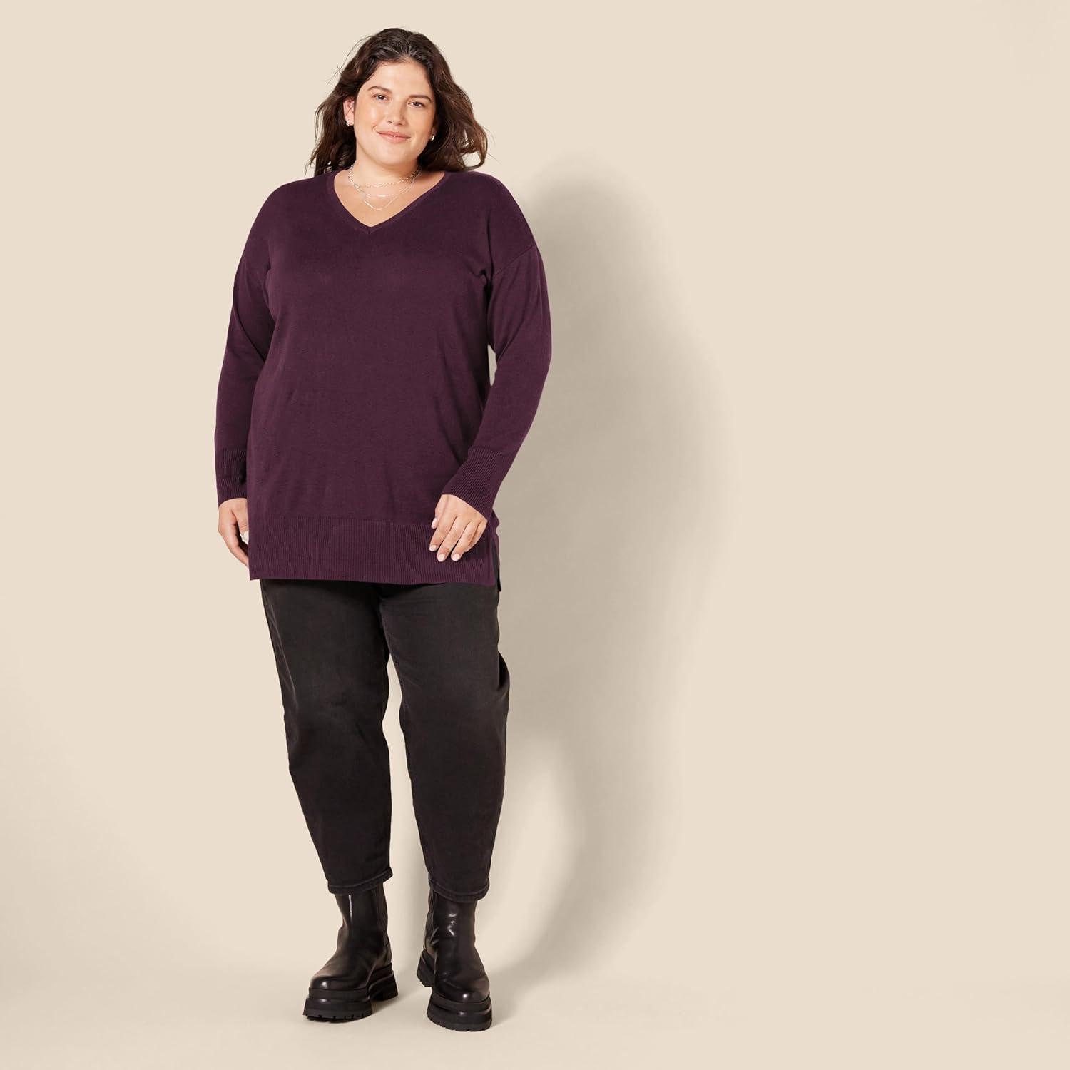 Amazon Essentials Women’s Lightweight Long-Sleeve V-Neck Tunic Sweater (Available in Plus Size)(Burgundy)