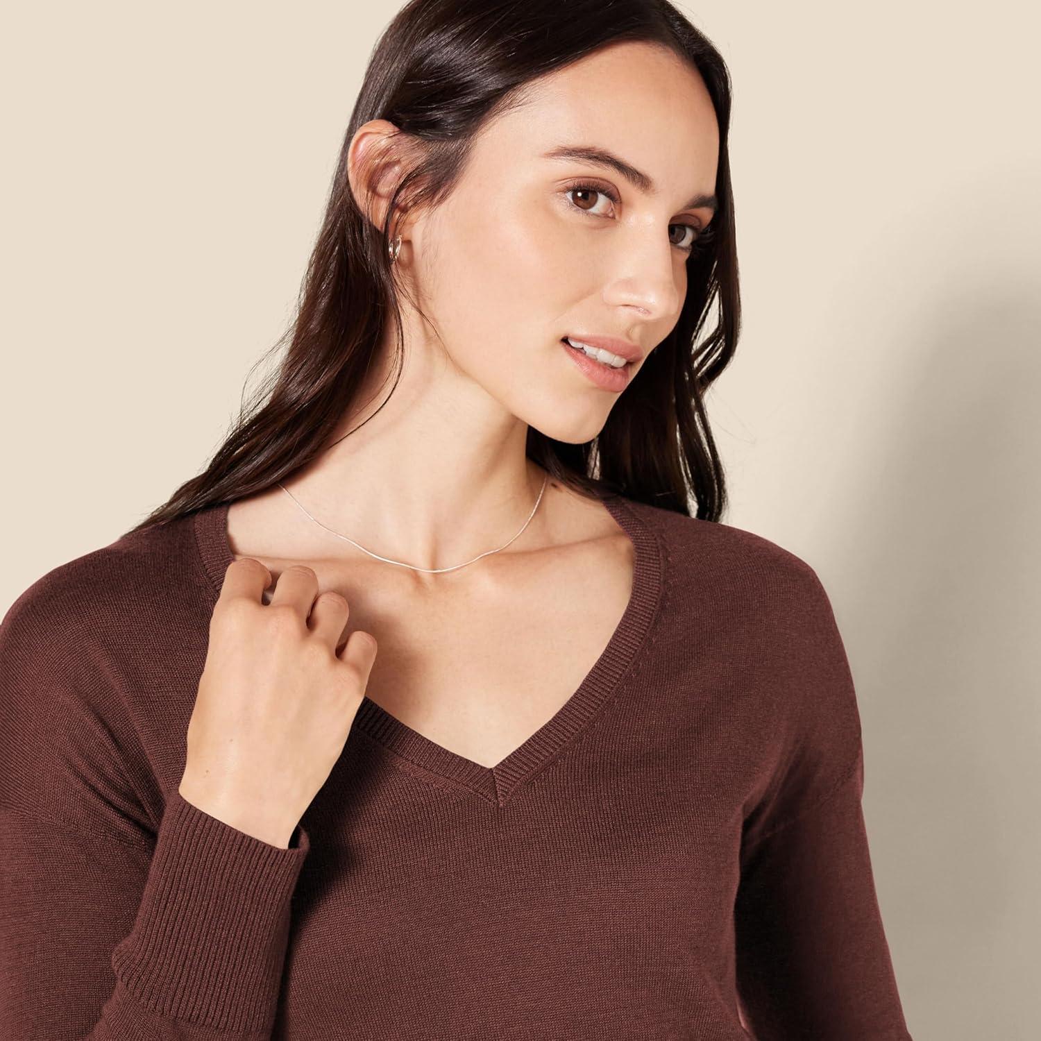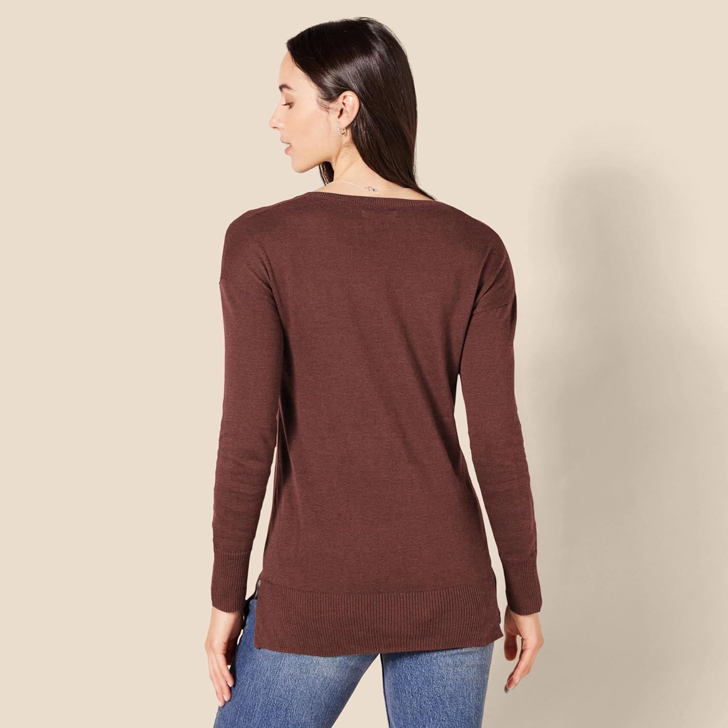 Amazon Essentials Women’s Lightweight Long-Sleeve V-Neck Tunic Sweater (Available in Plus Size)(Dark Chestnut Brown Heather)