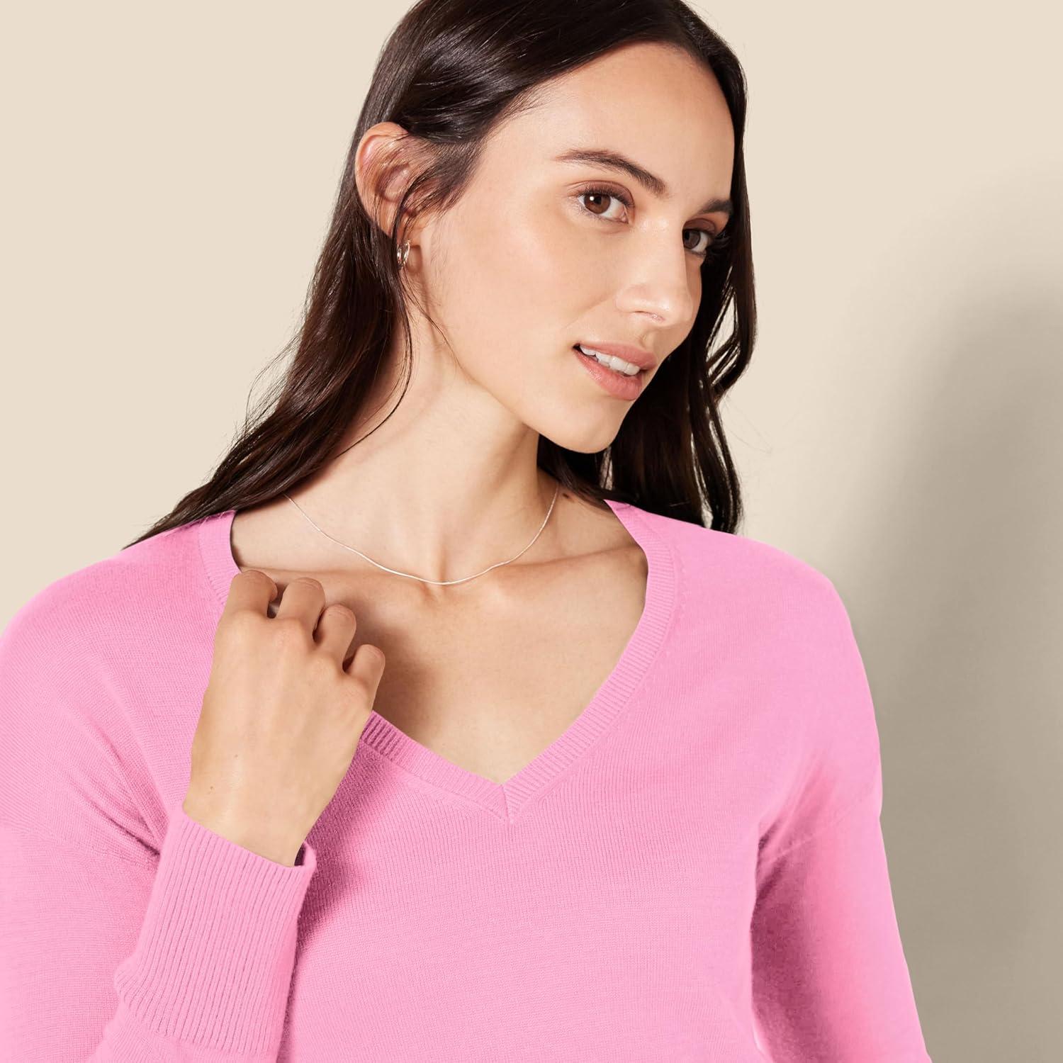 Amazon Essentials Women’s Lightweight Long-Sleeve V-Neck Tunic Sweater (Available in Plus Size)(Pink)