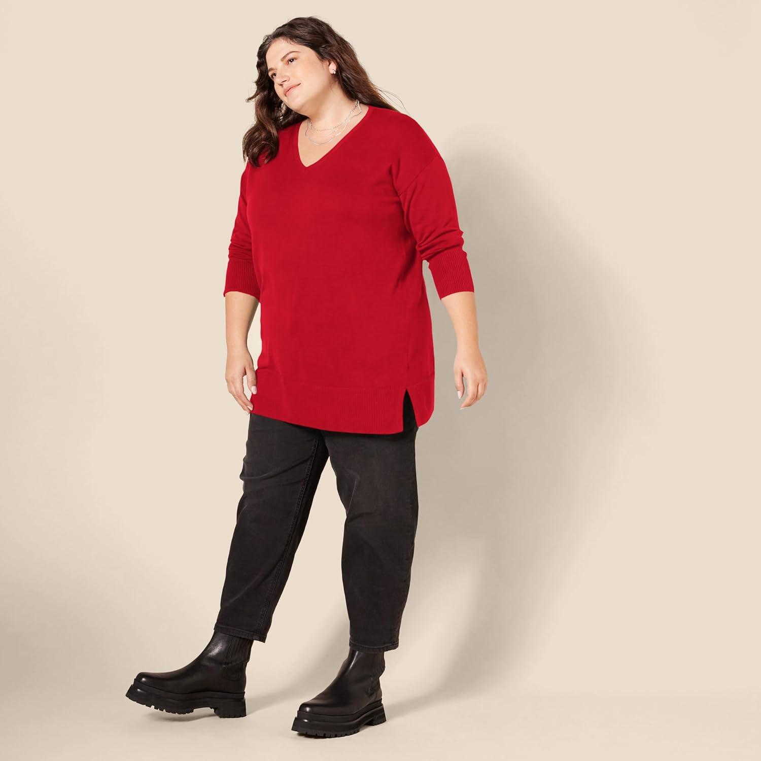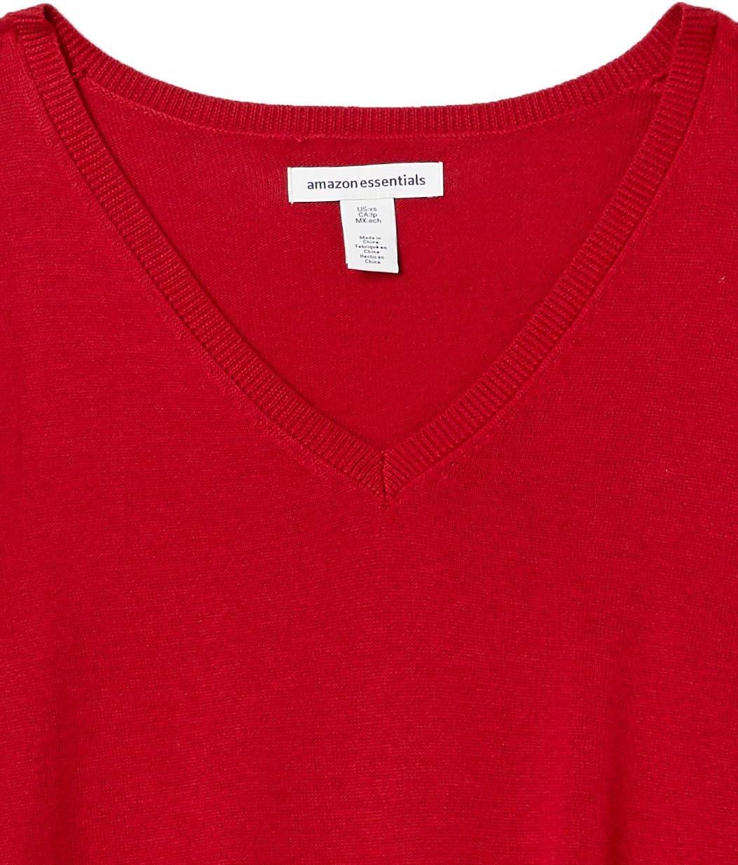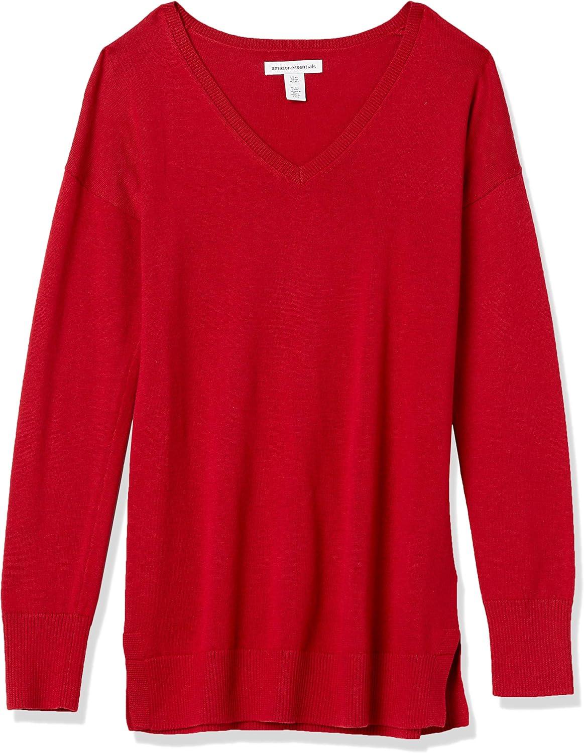Amazon Essentials Women’s Lightweight Long-Sleeve V-Neck Tunic Sweater (Available in Plus Size)(Red)