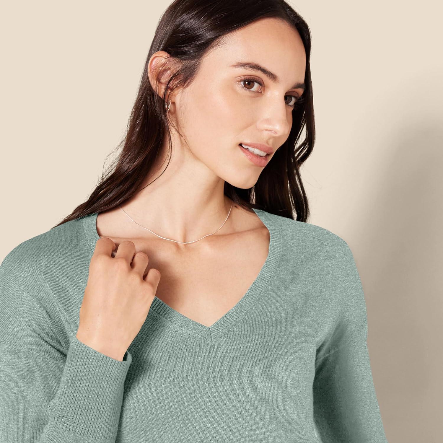 Amazon Essentials Women’s Lightweight Long-Sleeve V-Neck Tunic Sweater (Available in Plus Size)(Sage Green Heather)