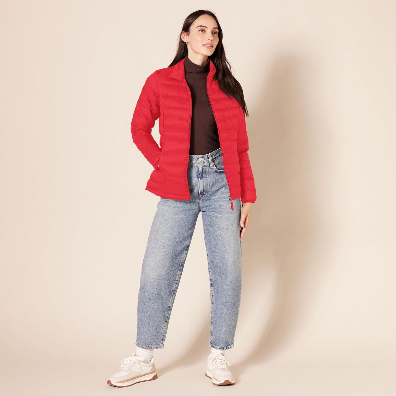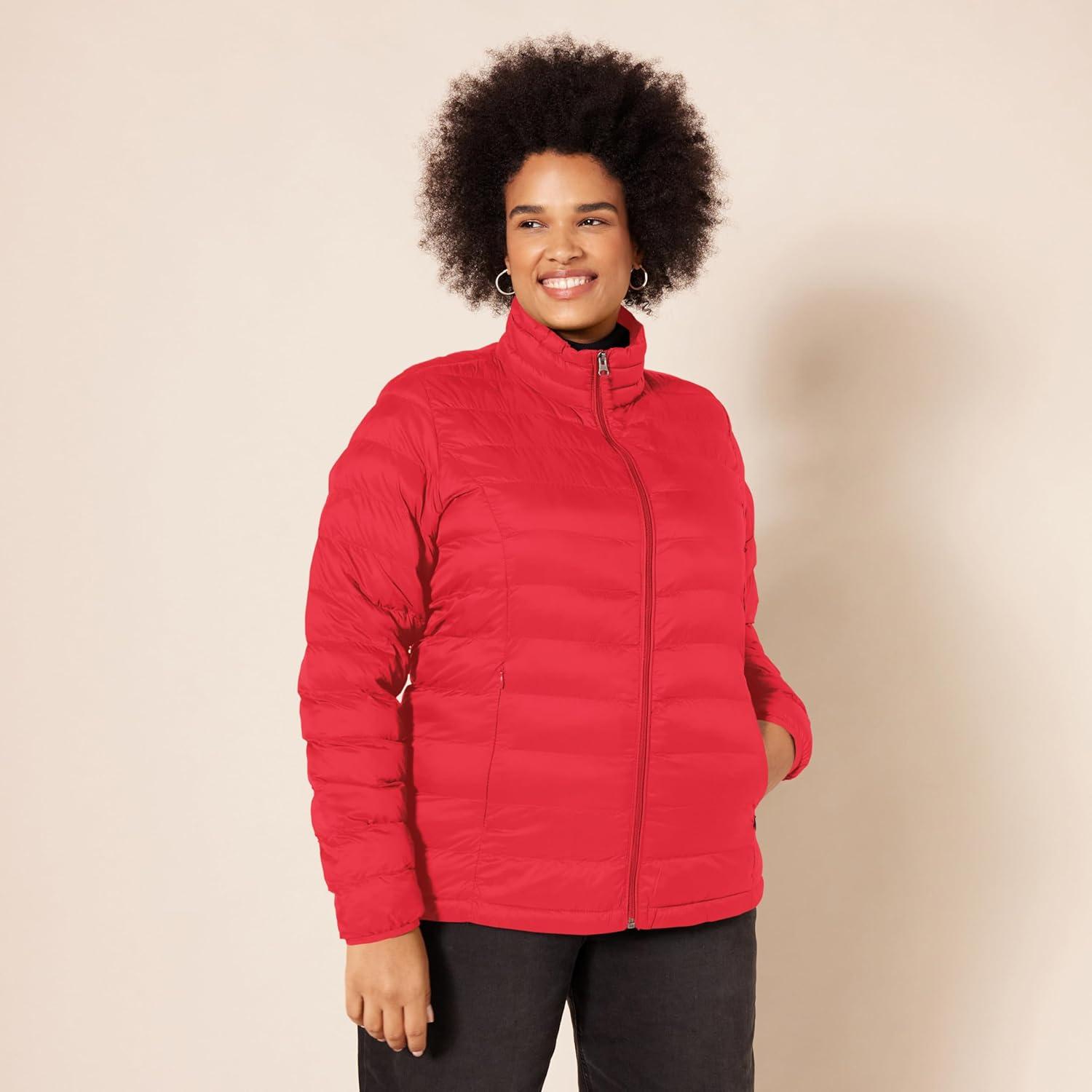 Amazon Essentials womens Lightweight Long-Sleeve Water-Resistant Packable Puffer Jacket (Available in Plus Size)(Bright Poppy Red)