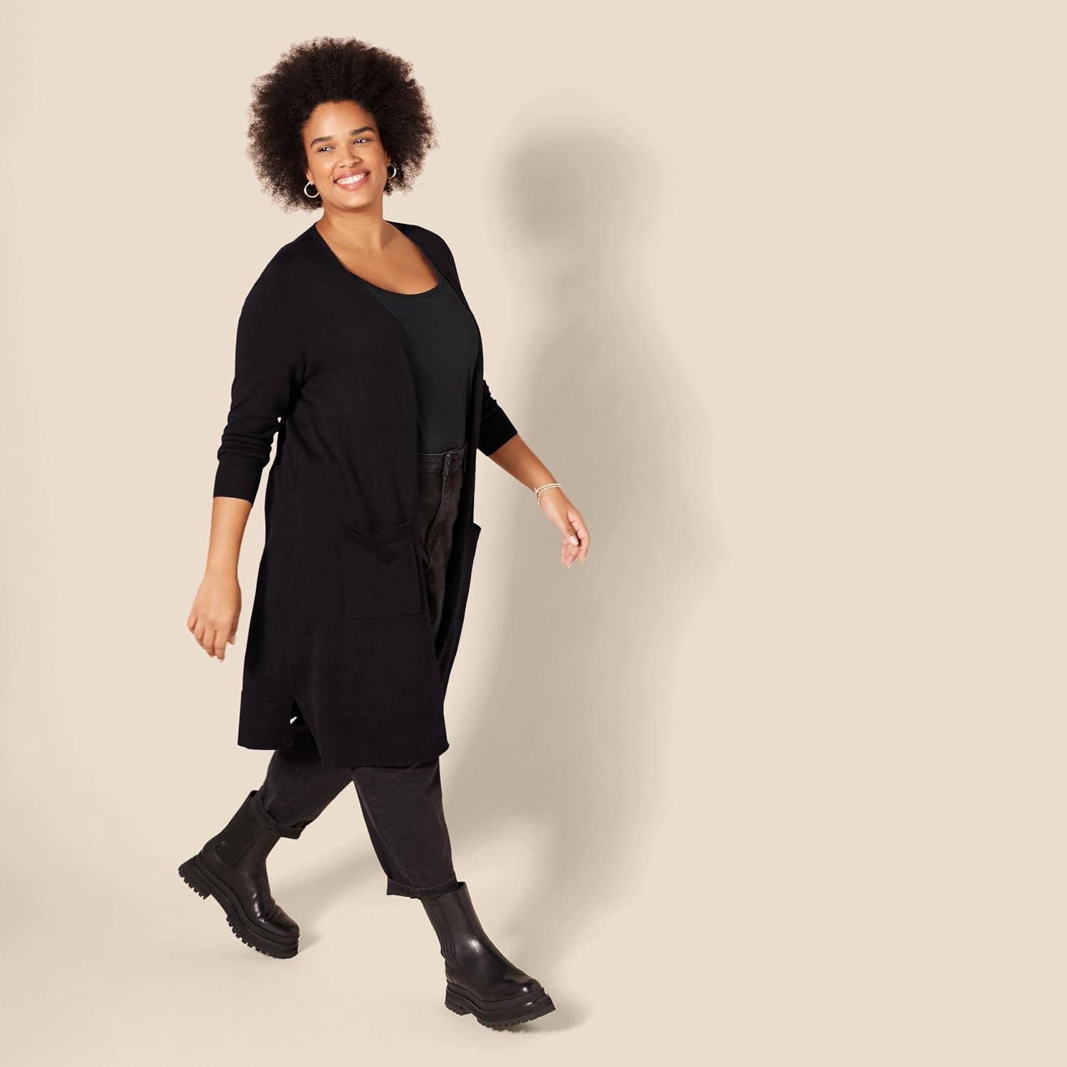 Amazon Essentials Women’s Lightweight Longer Length Open-Front Long-Sleeve Cardigan Sweater (Available in Plus Size)(Black)