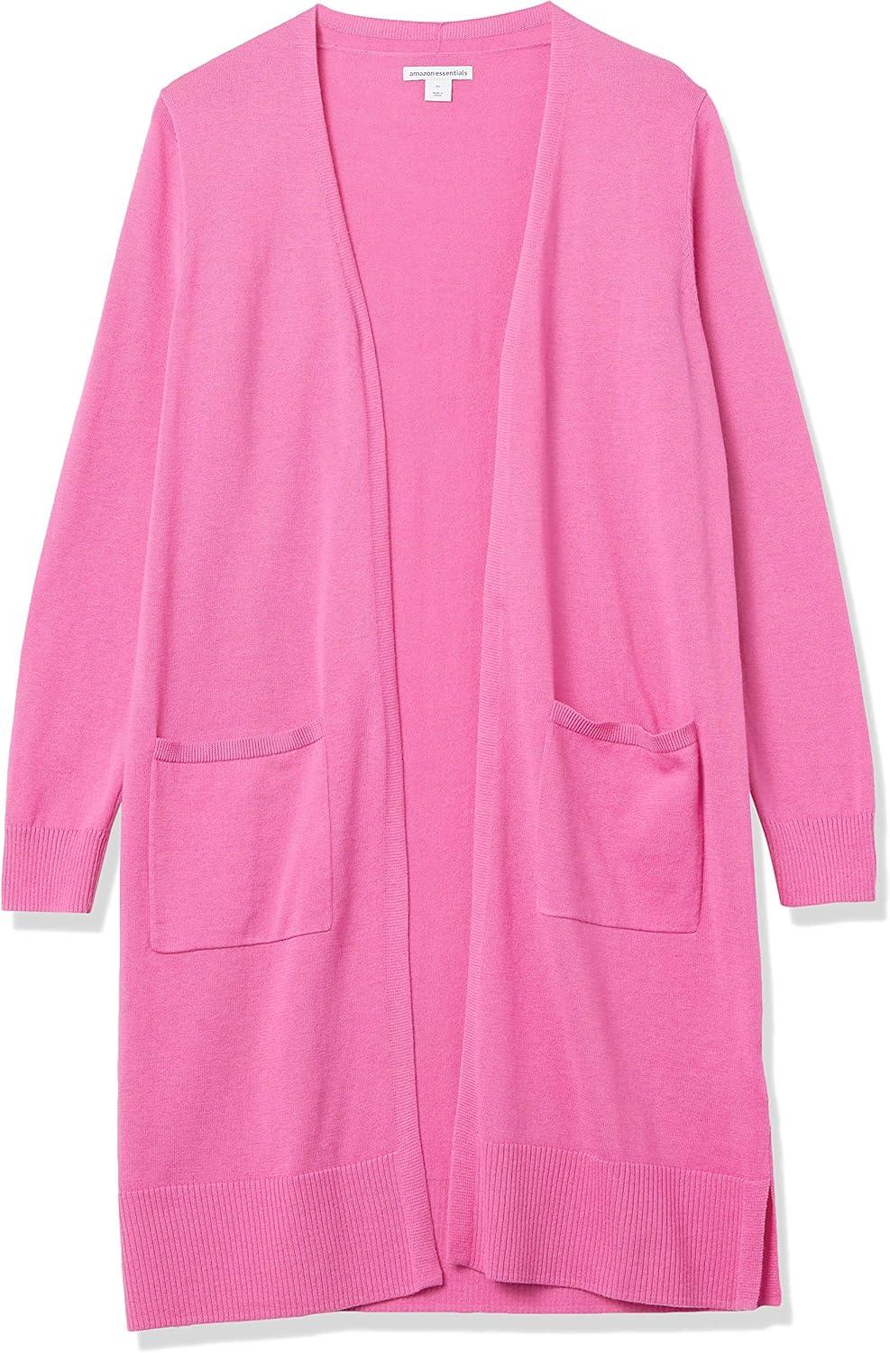 Amazon Essentials Women’s Lightweight Longer Length Open-Front Long-Sleeve Cardigan Sweater (Available in Plus Size)(Bright Pink)