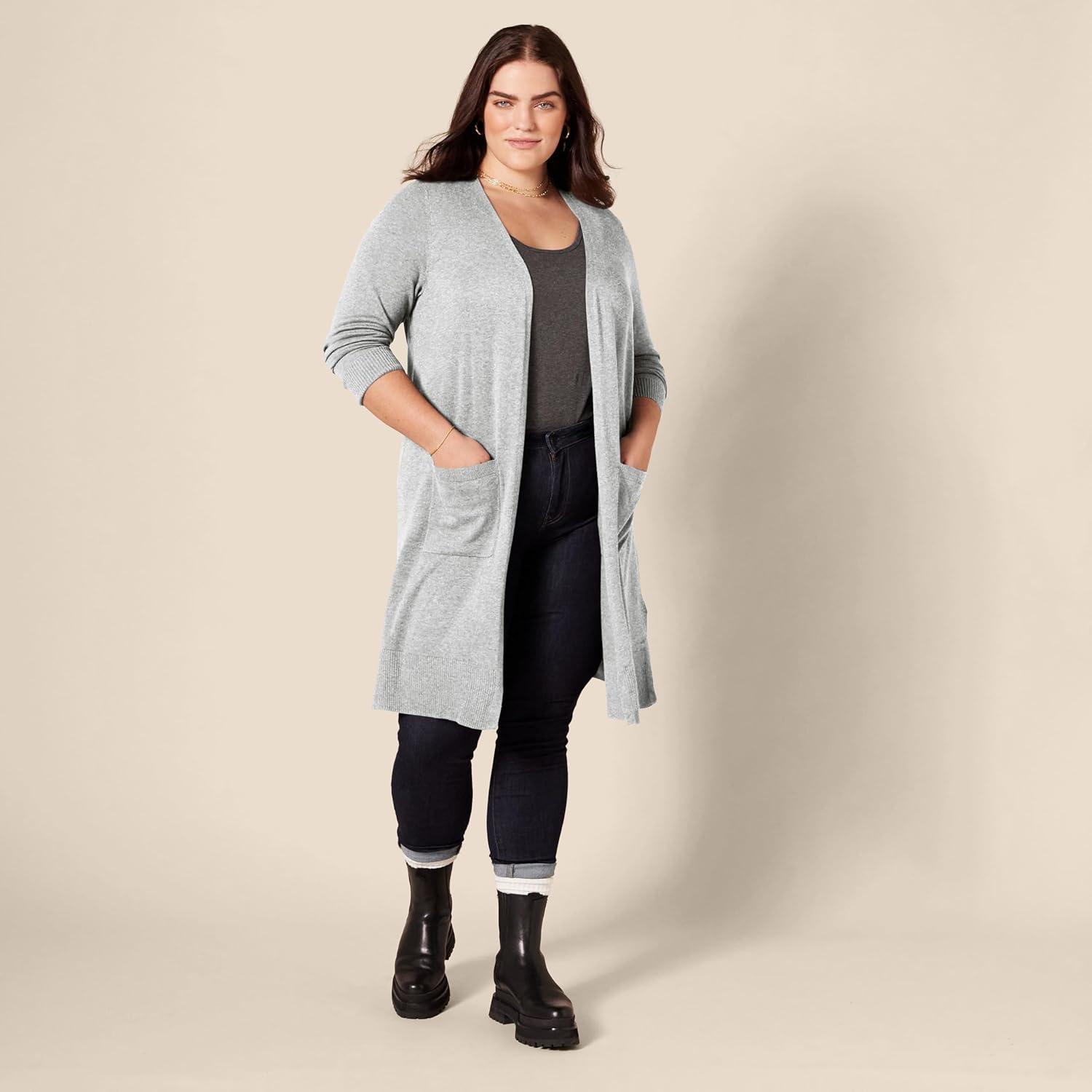Amazon Essentials Women's Lightweight Longer Length Open-Front Long-Sleeve Cardigan Sweater (Available in Plus Size)(Light Grey Heather)