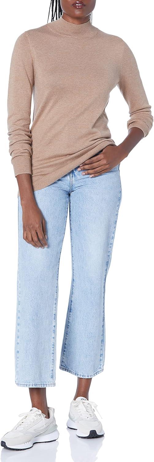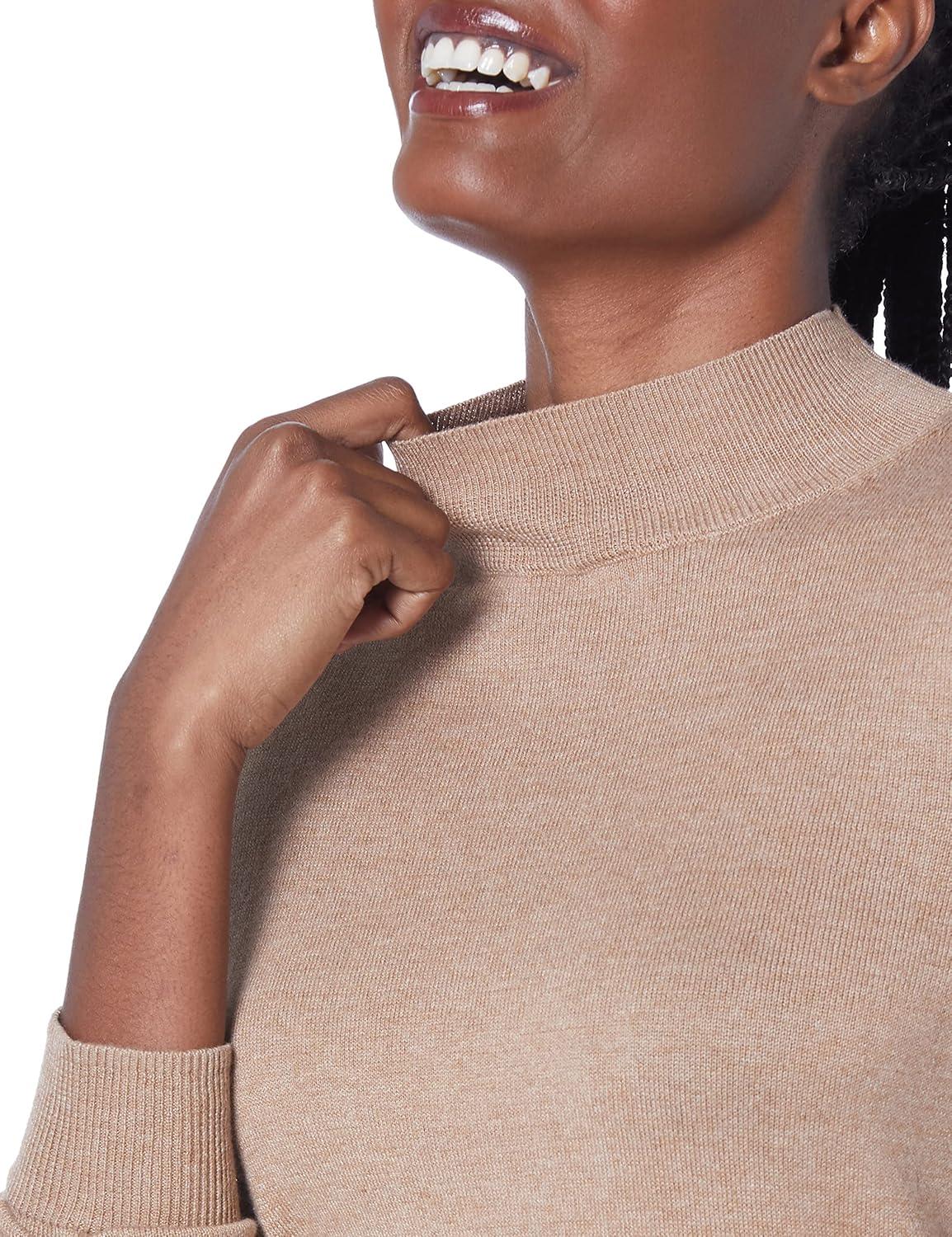 Amazon Essentials Women’s Lightweight Mockneck Sweater (Available in Plus Size)(Camel Heather)