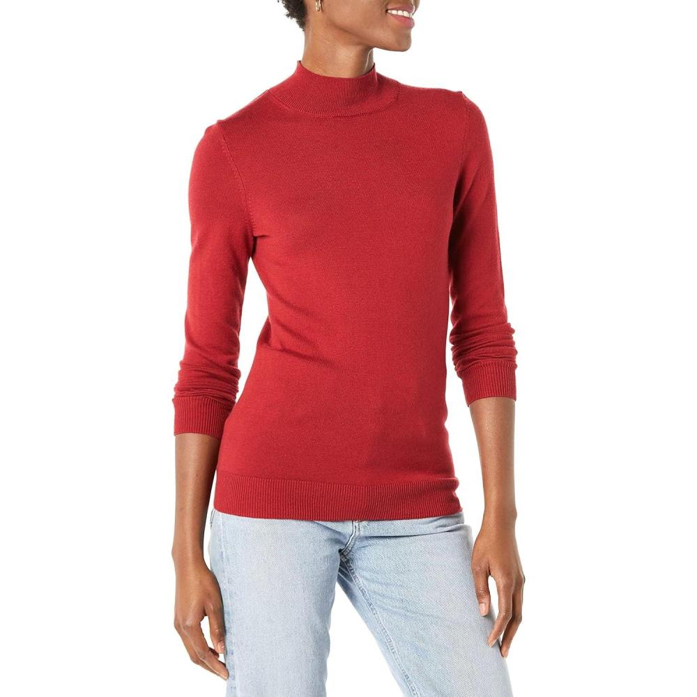 Amazon Essentials Women’s Lightweight Mockneck Sweater (Available in Plus Size)(Dark Red)