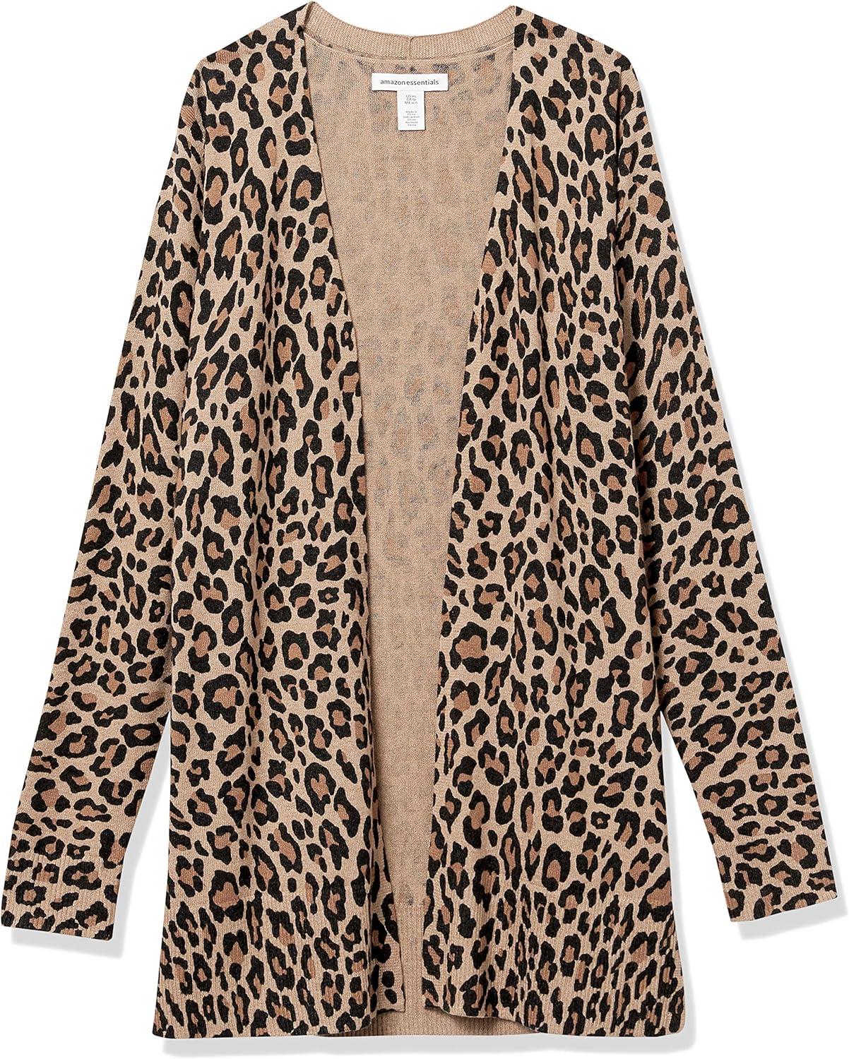 Amazon Essentials Women’s Lightweight Open-Front Cardigan Sweater (Available in Plus Size)(Camel Leopard)