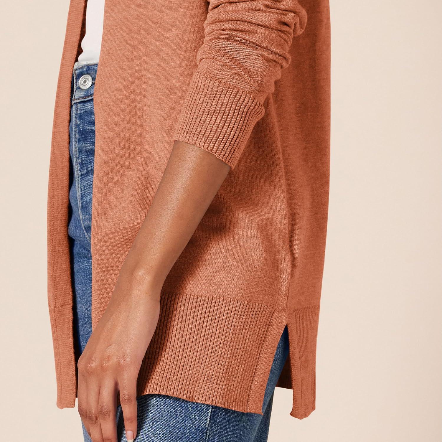 Amazon Essentials Women’s Lightweight Open-Front Cardigan Sweater (Available in Plus Size)(Dark Chestnut Brown Heather)