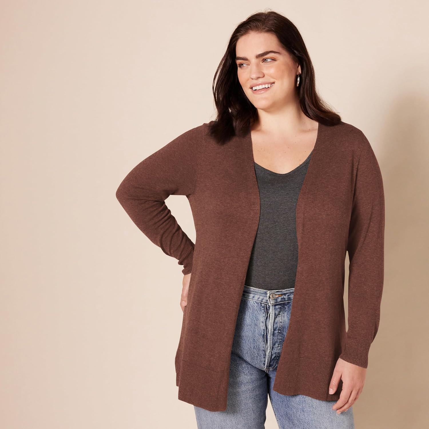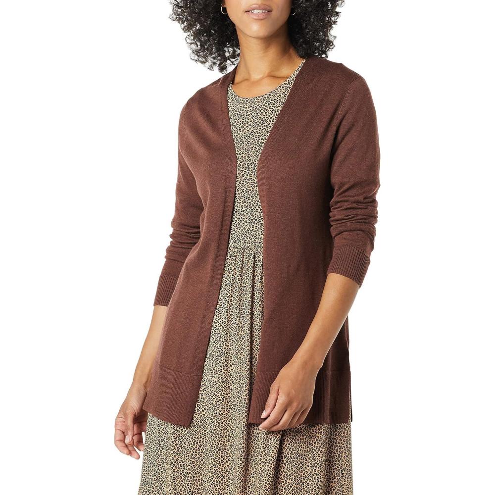 Amazon Essentials Women’s Lightweight Open-Front Cardigan Sweater (Available in Plus Size)(Dark Chestnut Brown Heather)