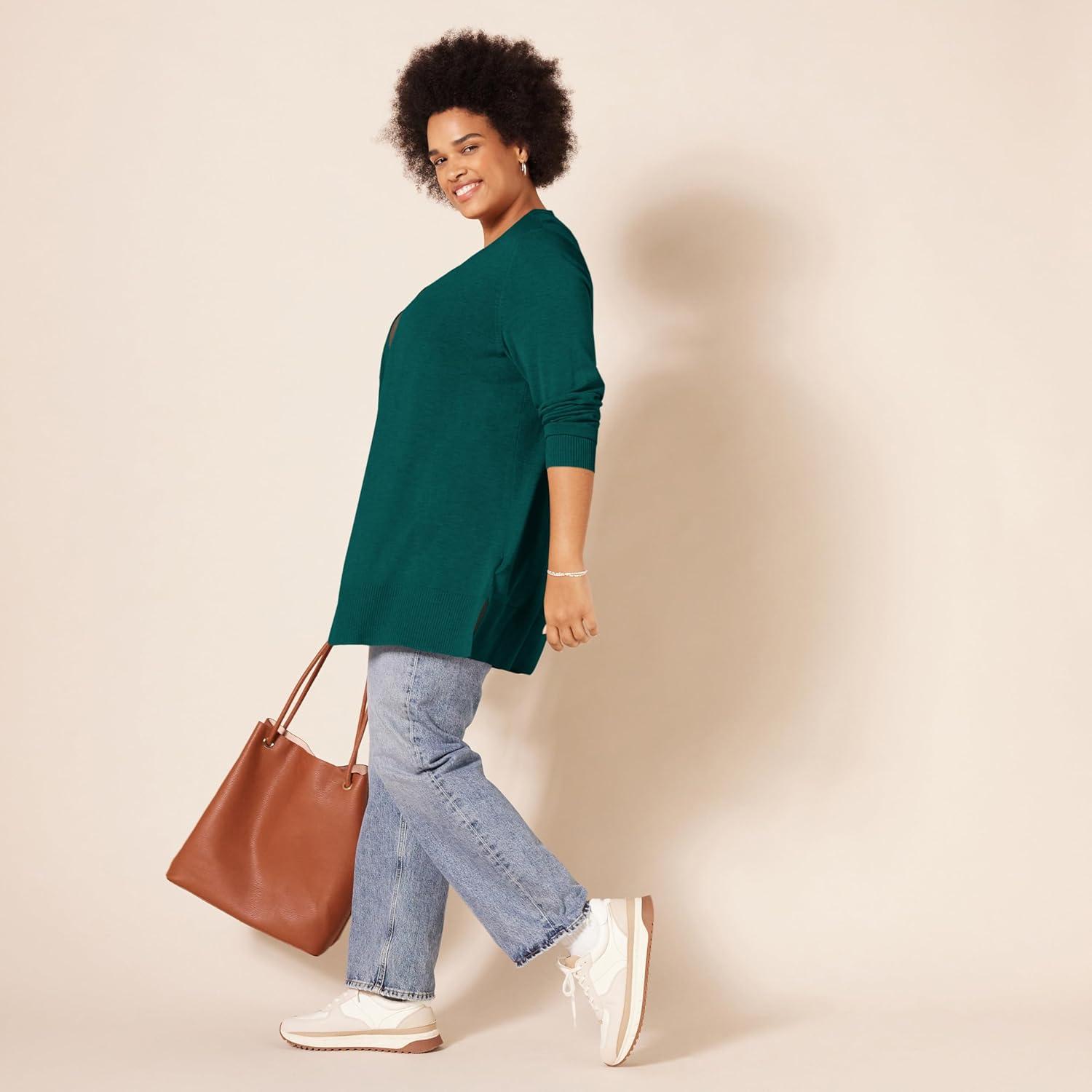 Amazon Essentials Women’s Lightweight Open-Front Cardigan Sweater (Available in Plus Size)(Dark Green)