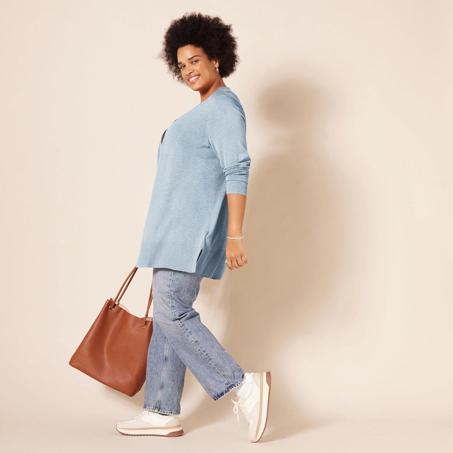 Amazon Essentials Women’s Lightweight Open-Front Cardigan Sweater (Available in Plus Size)(Indigo Blue Heather)