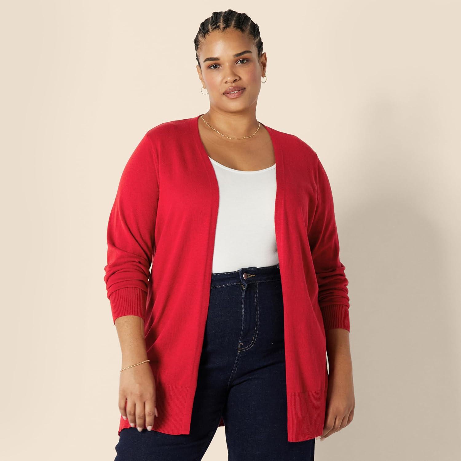 Amazon Essentials Women’s Lightweight Open-Front Cardigan Sweater (Available in Plus Size)(Red)