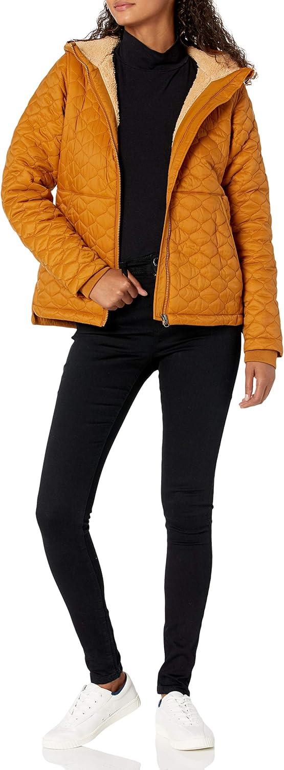 Amazon Essentials womens Lightweight Quilted Full-Zip Water-Resistant Sherpa-Lined Hooded Puffer Jacket(Camel)