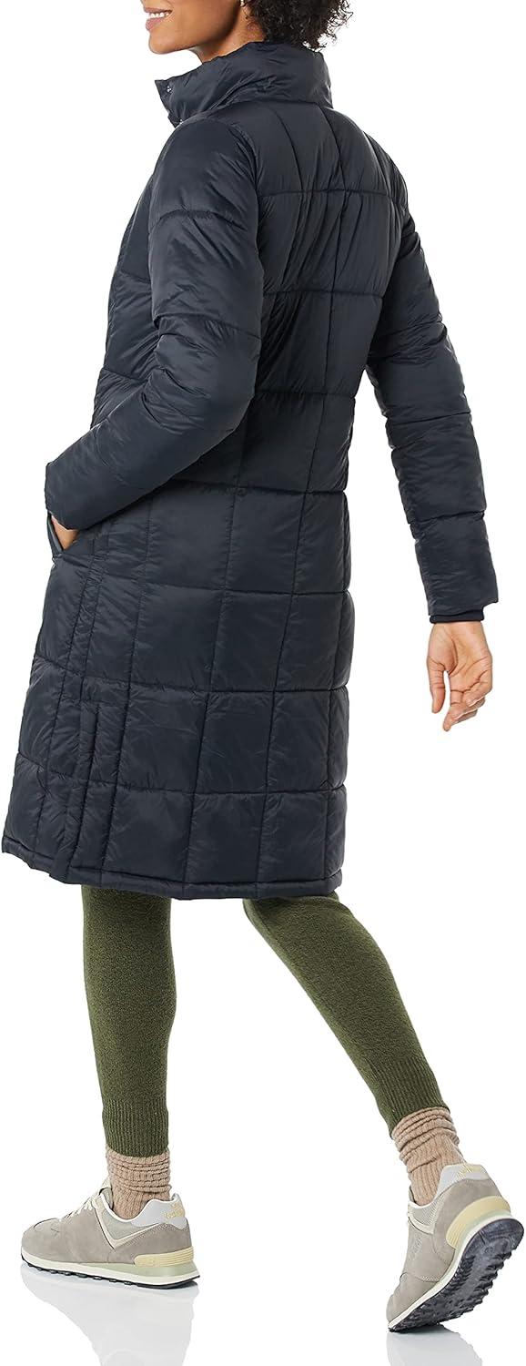 Amazon Essentials Women’s Lightweight Quilted Long Puffer Winter Coat(Black)