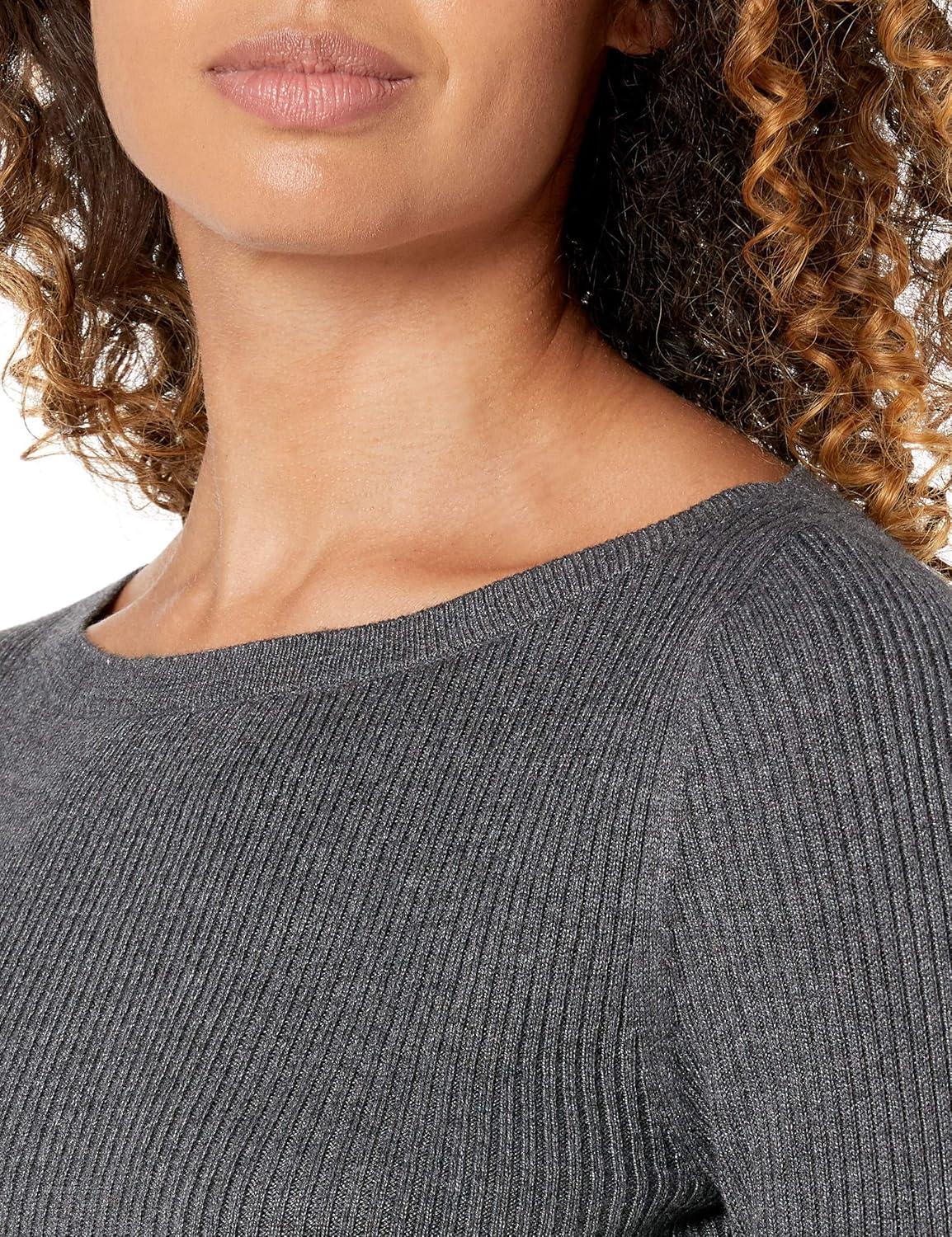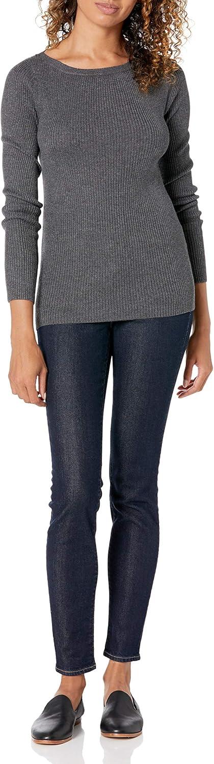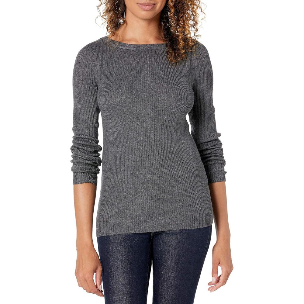 Amazon Essentials Women’s Lightweight Ribbed Long-Sleeve Boat Neck Slim-Fit Sweater(Charcoal Heather)
