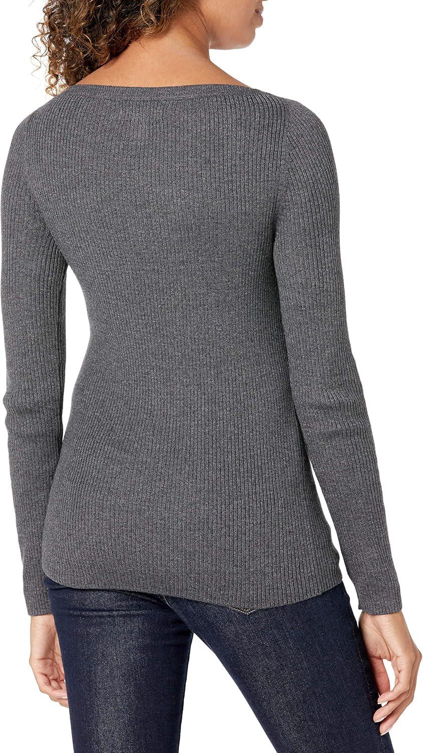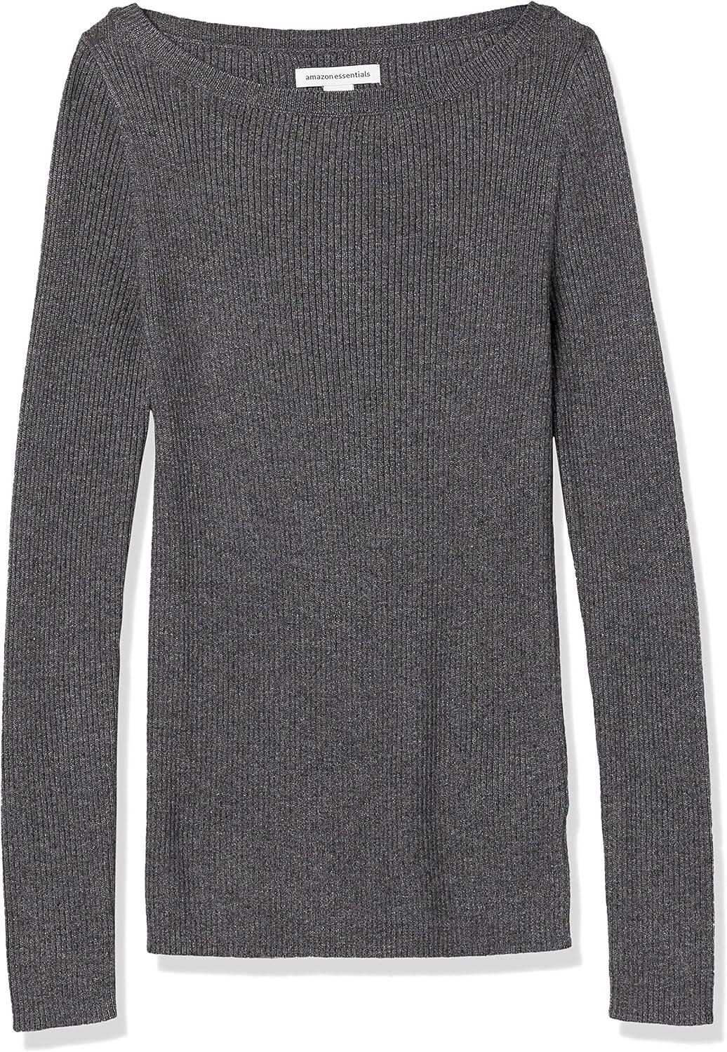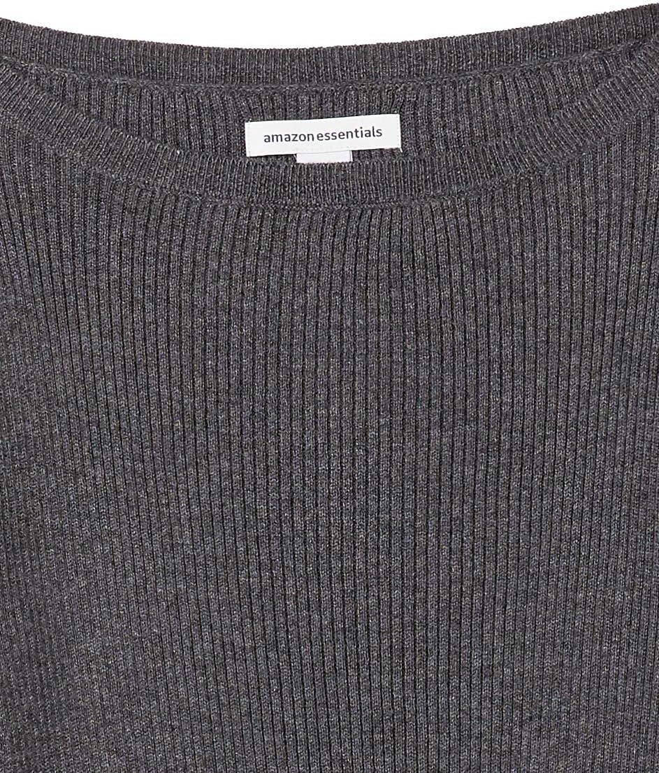 Amazon Essentials Women's Lightweight Ribbed Long-Sleeve Boat Neck Slim-Fit Sweater(Charcoal Heather)