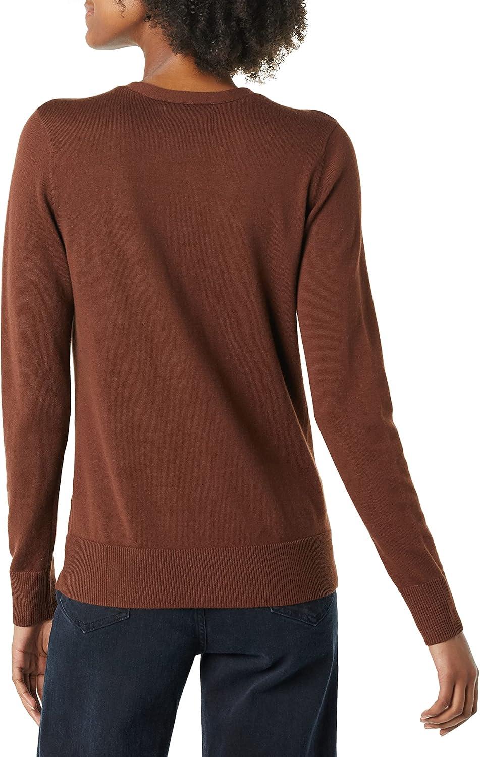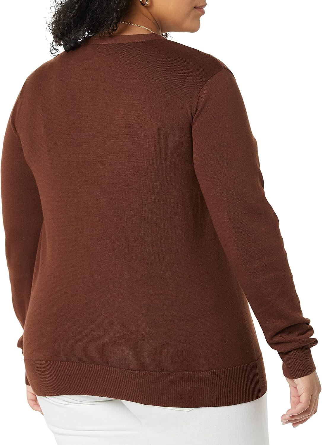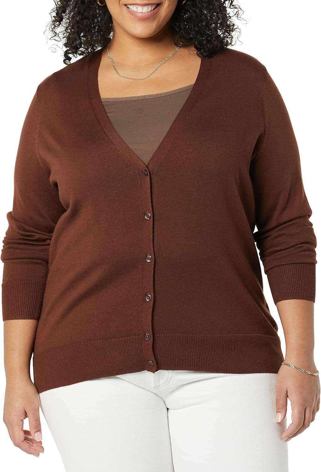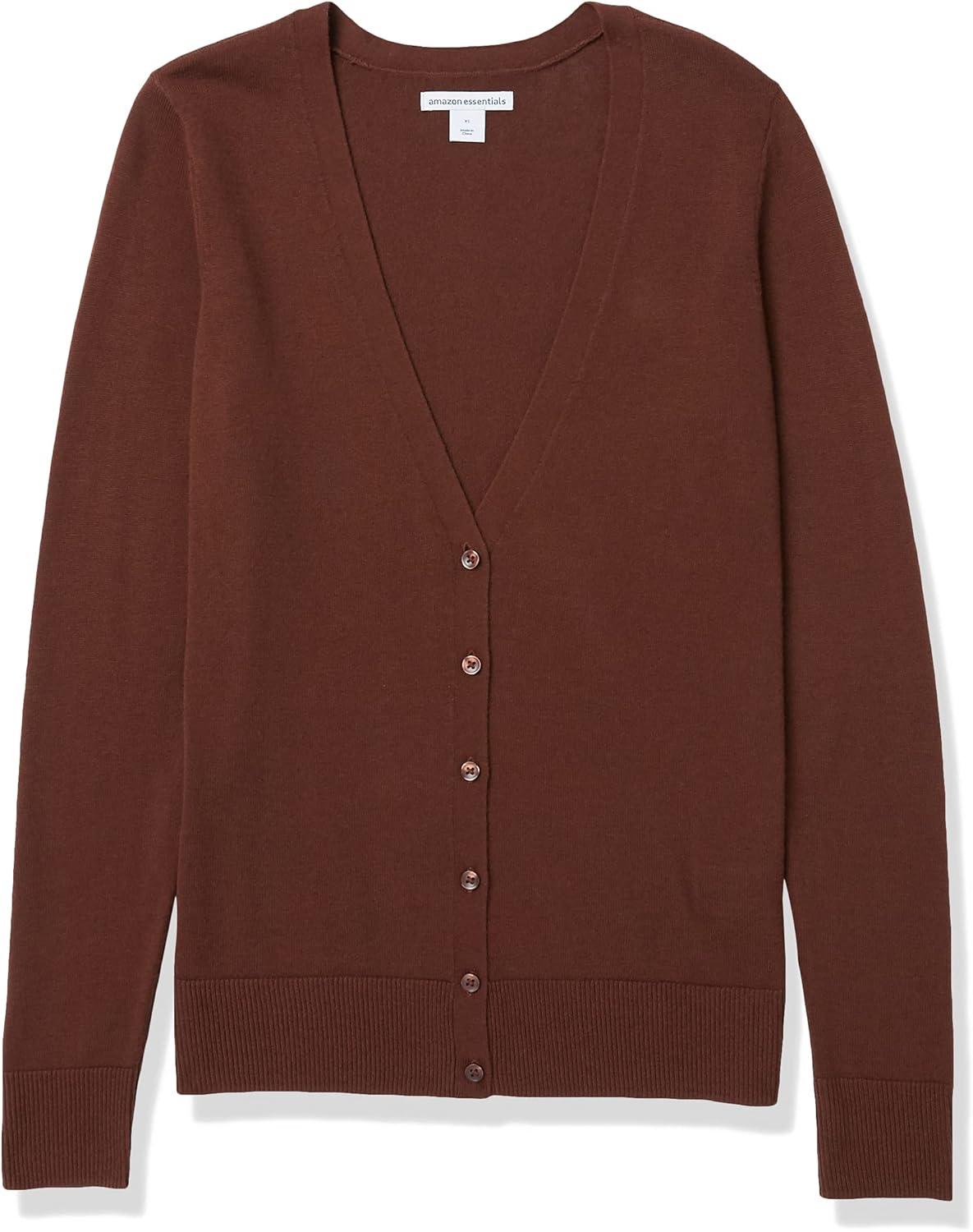 Amazon Essentials Women’s Lightweight V-Neck Cardigan Sweater (Available in Plus Size)(Brown)