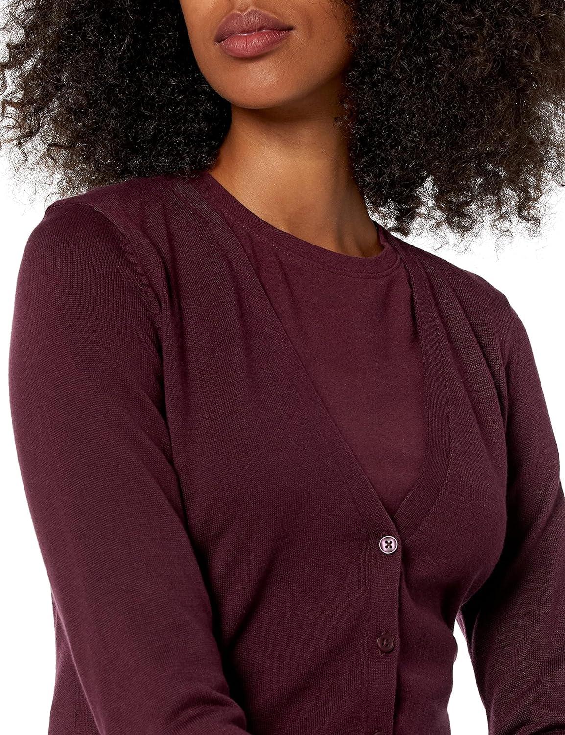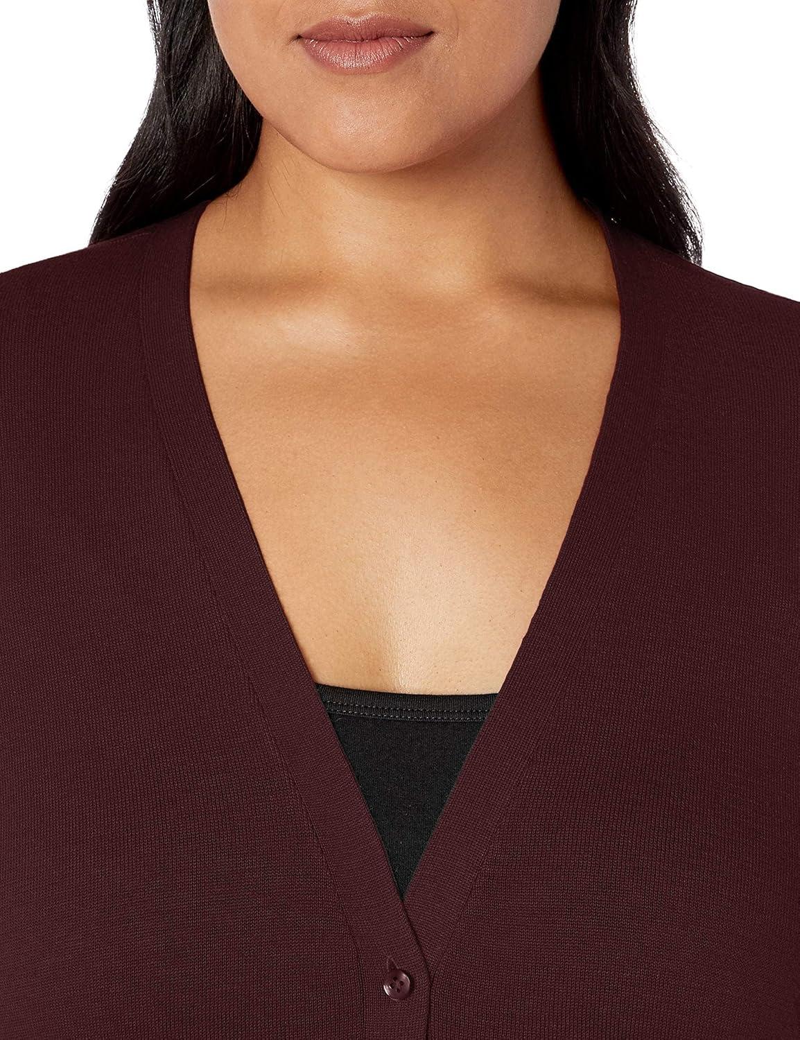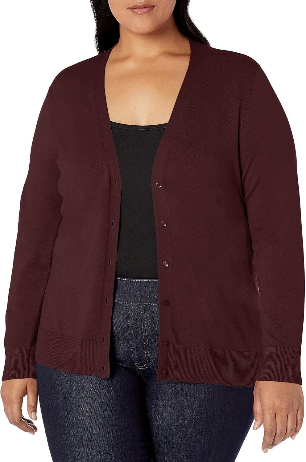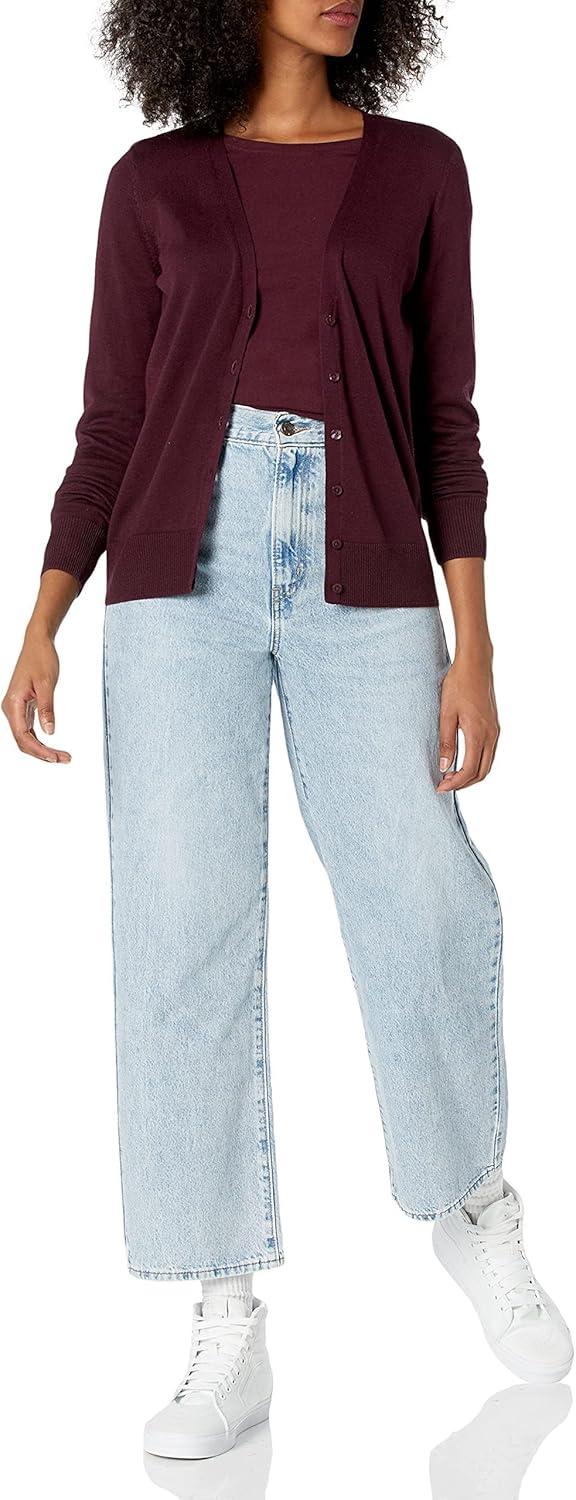 Amazon Essentials Women’s Lightweight V-Neck Cardigan Sweater (Available in Plus Size)(Burgundy)