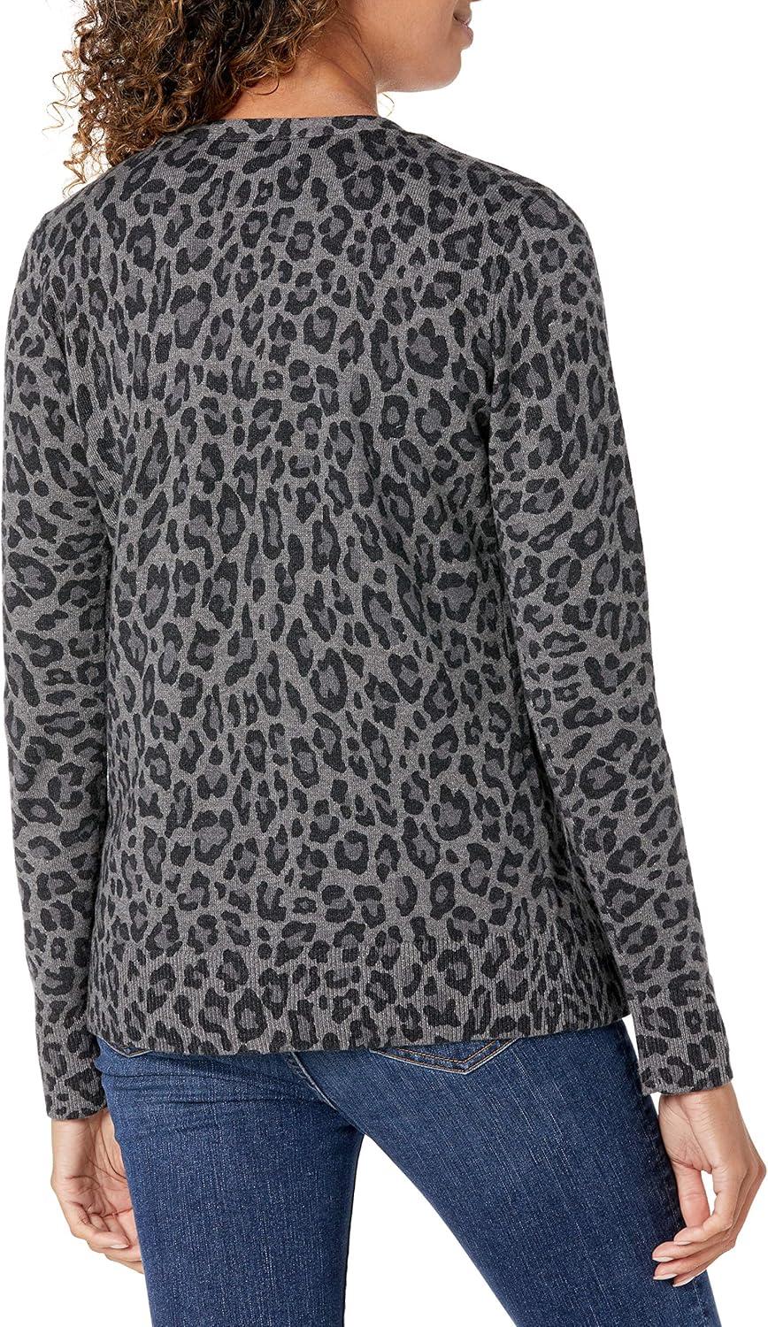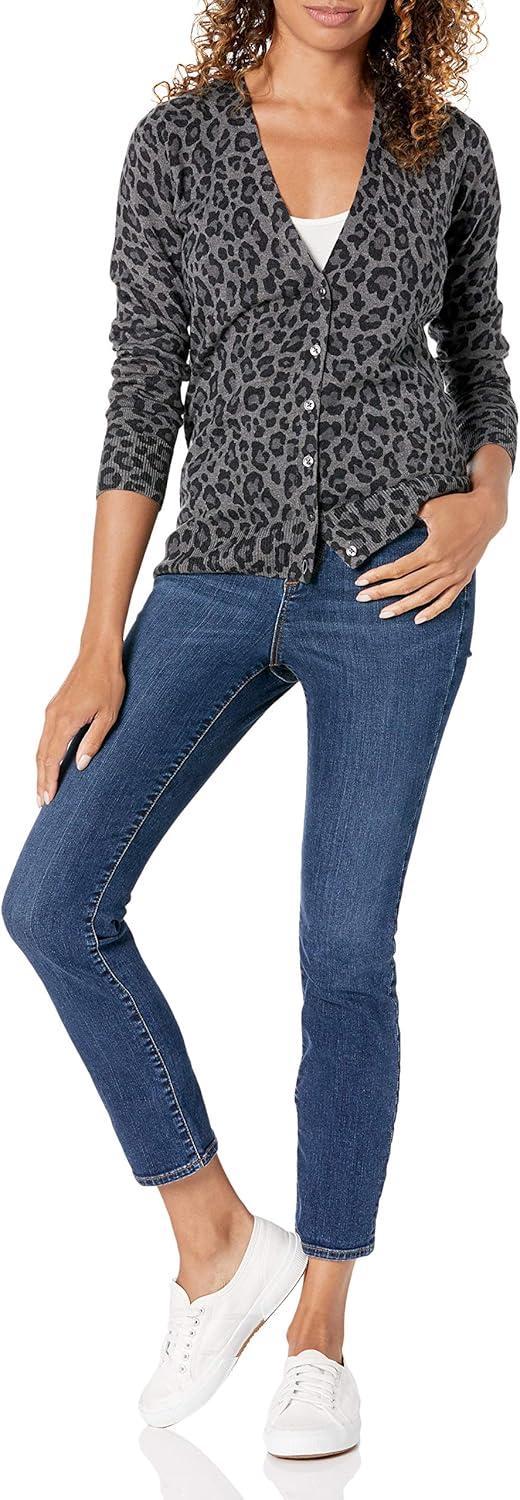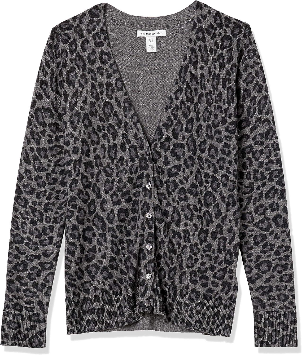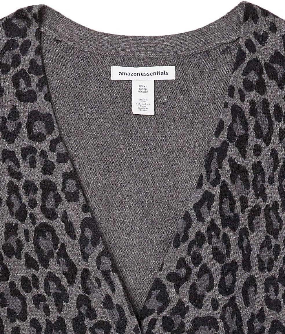 Amazon Essentials Women's Lightweight V-Neck Cardigan Sweater (Available in Plus Size)(Charcoal Heather Animal)