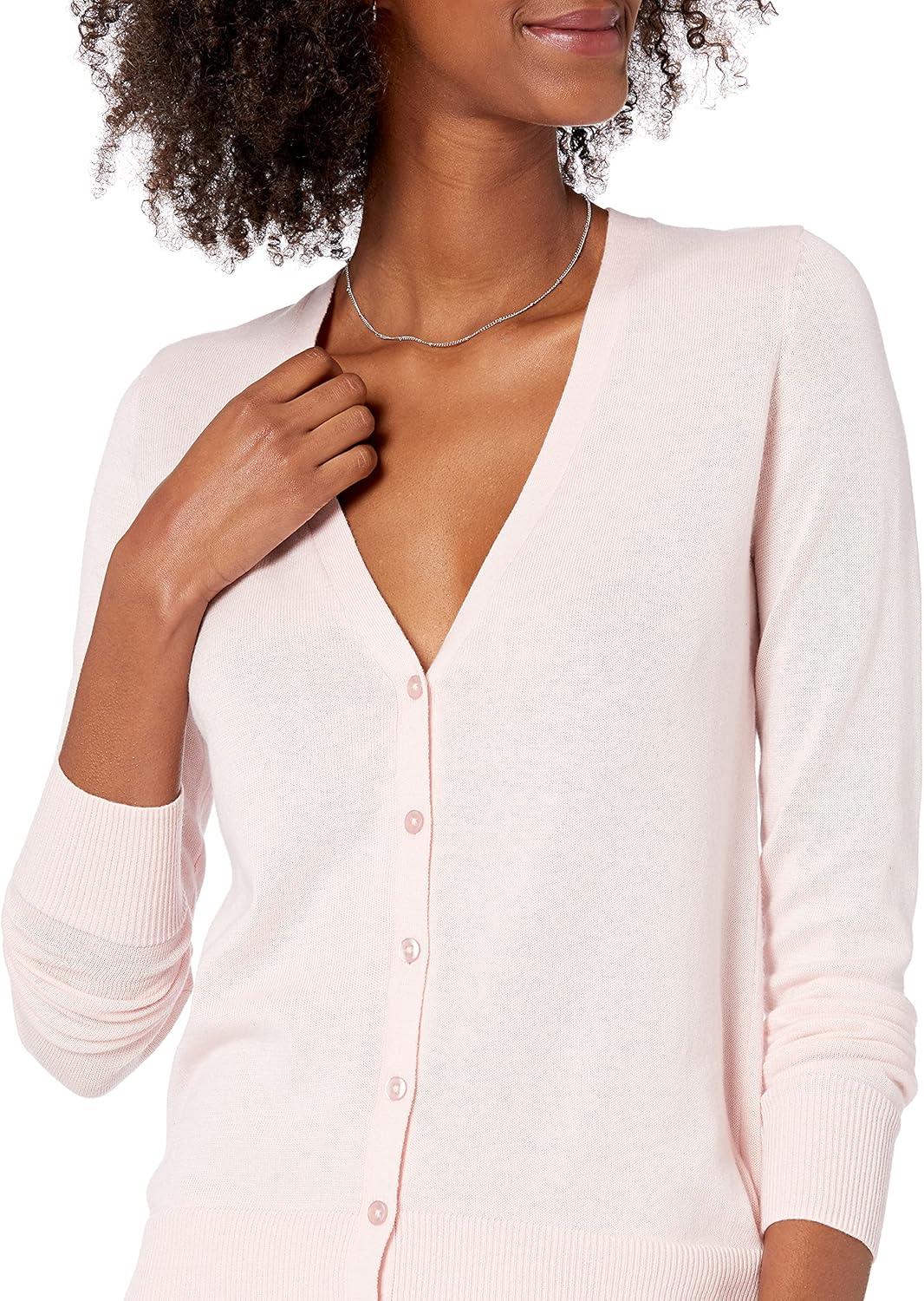 Amazon Essentials Women’s Lightweight V-Neck Cardigan Sweater (Available in Plus Size)(Light Pink)