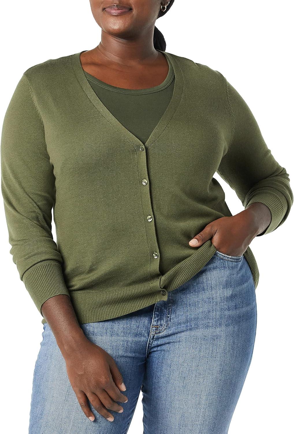 Amazon Essentials Women's Lightweight V-Neck Cardigan Sweater (Available in Plus Size)(Olive)