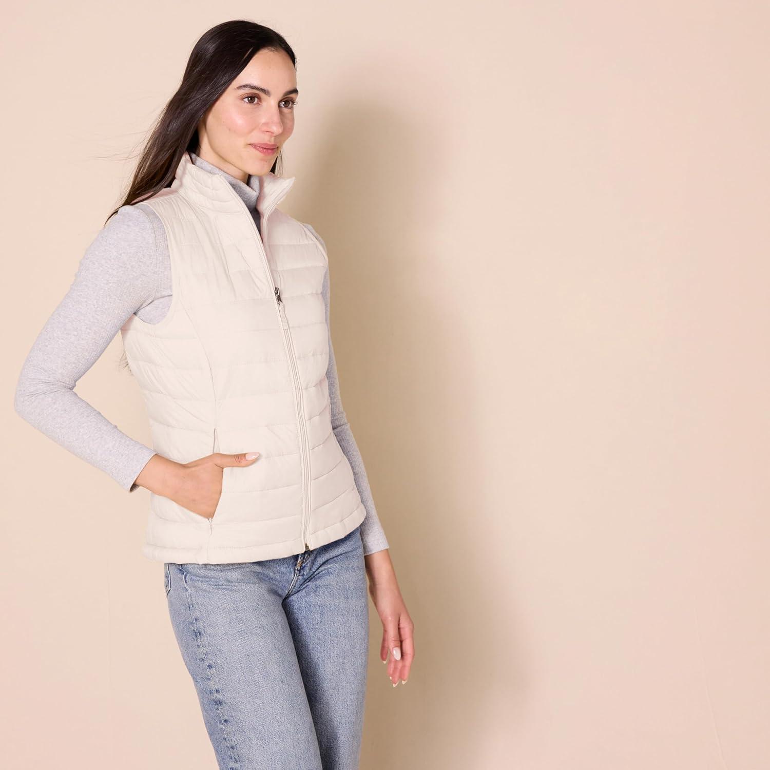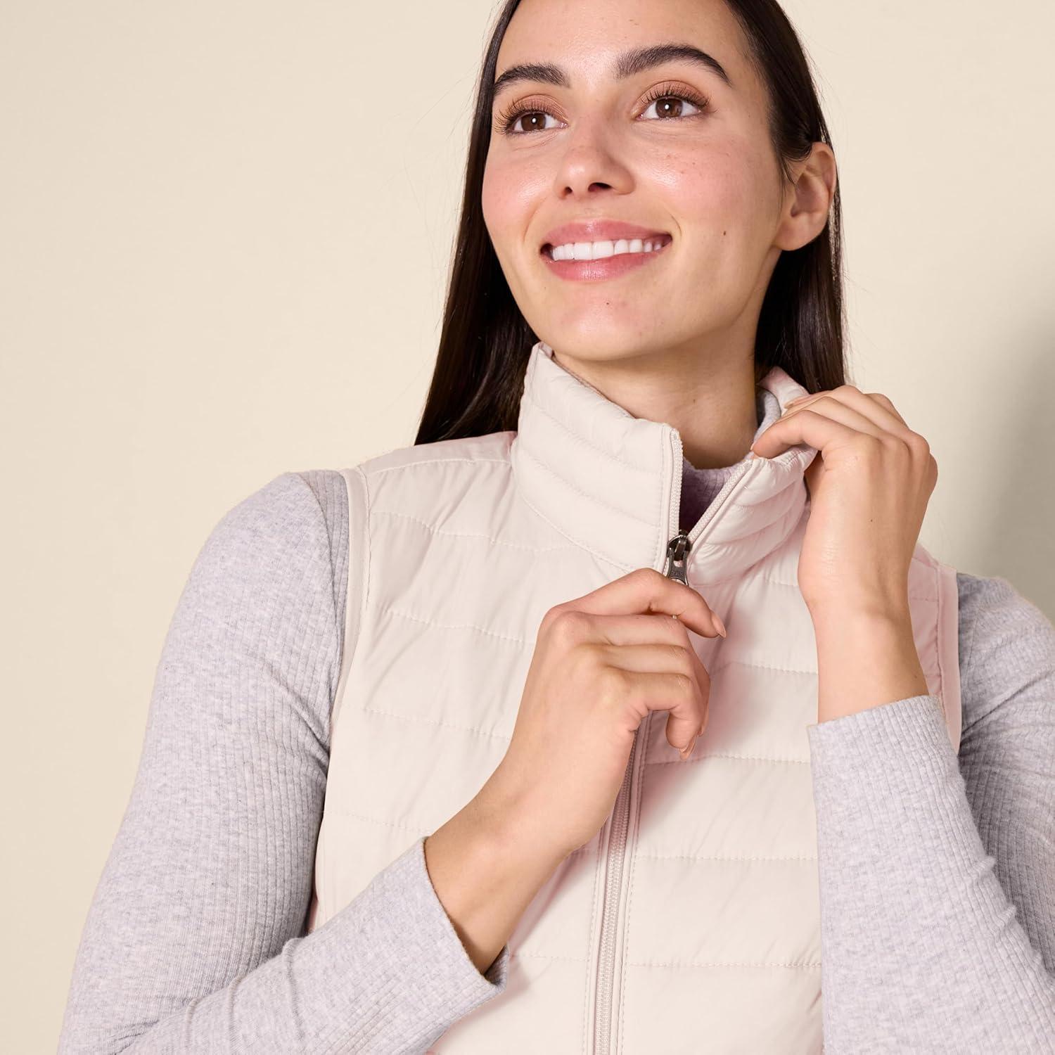 Amazon Essentials Women’s Lightweight Water-Resistant Packable Puffer Vest(Light Pink)