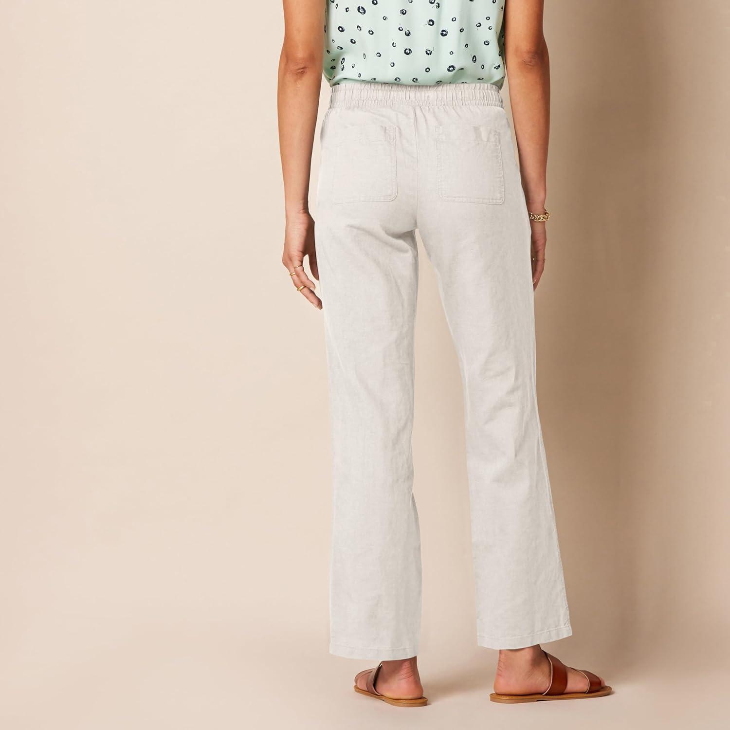 Amazon Essentials Women’s Linen Blend Drawstring Relaxed Fit Wide Leg Pant (Available in Plus Size)(Ecru)