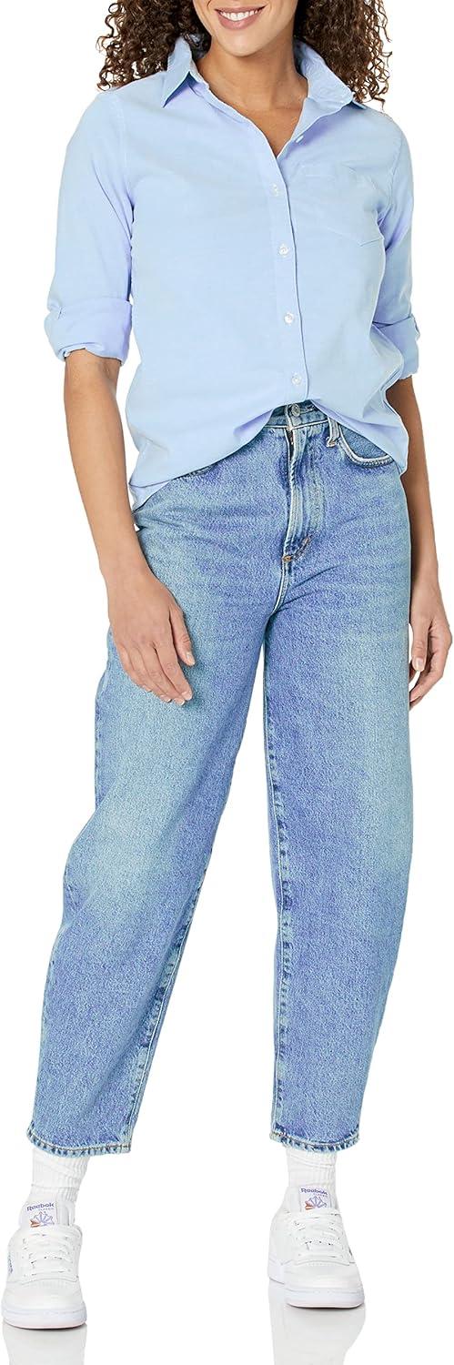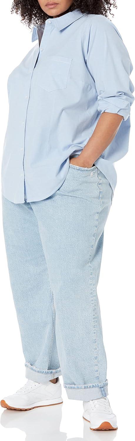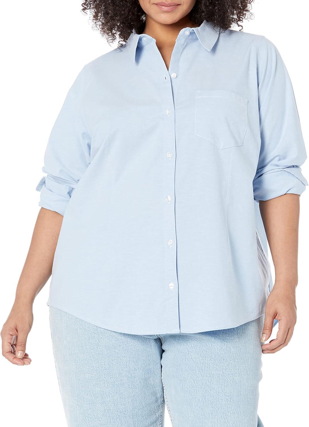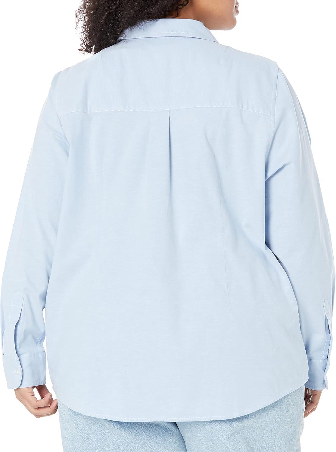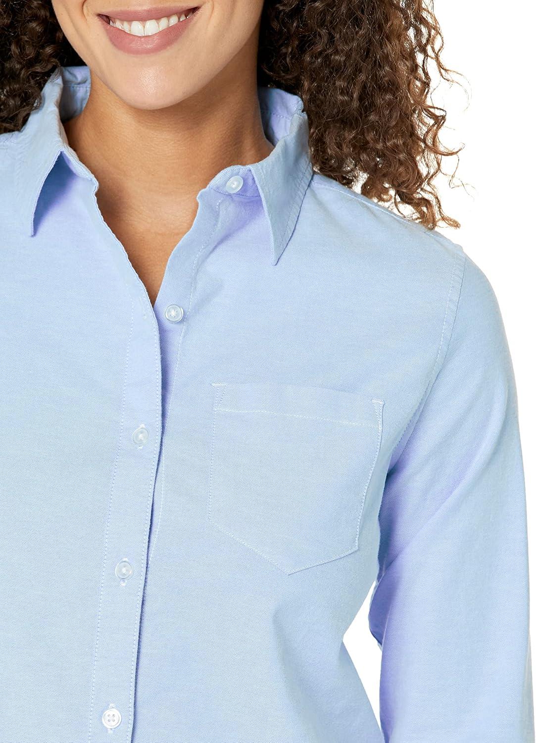 Amazon Essentials Women’s Long Sleeve Button Down Stretch Oxford Shirt (Available in Plus Size)(Blue)