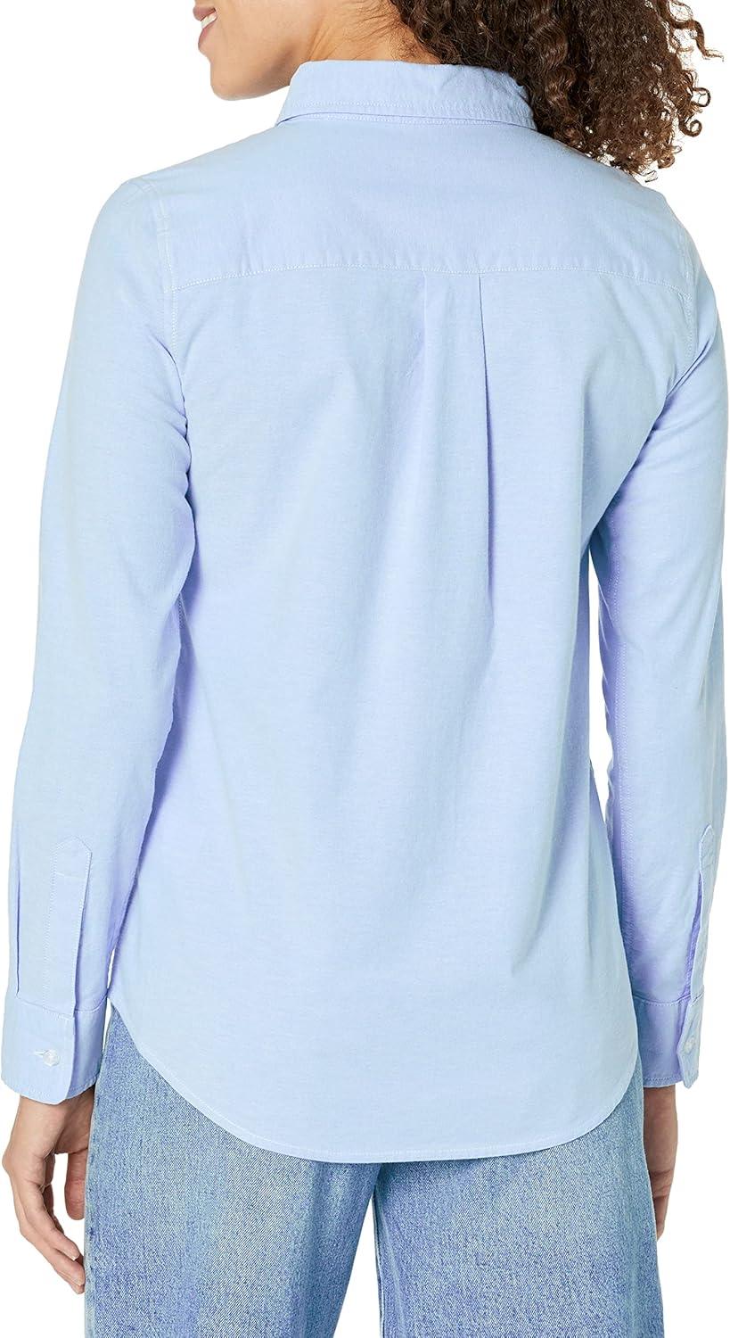 Amazon Essentials Women's Long Sleeve Button Down Stretch Oxford Shirt (Available in Plus Size)(Blue)